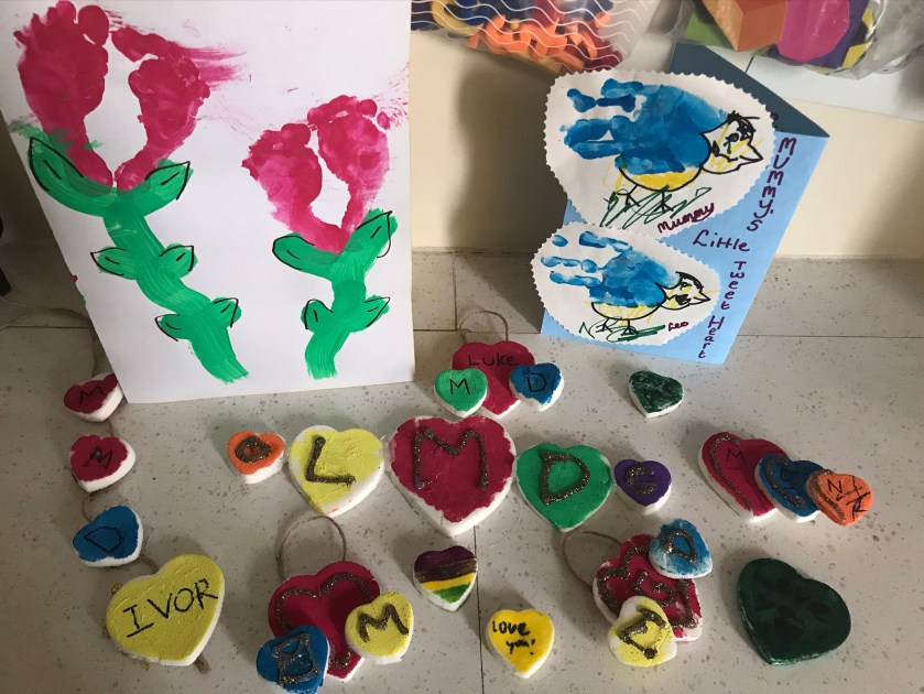 The Little Seedlings enjoyed making their mummies and daddies Valentine’s Day gifts. We made hang up hearts out of salt dough, feet flowers and tweet-heart birds for their cards. The Seedlings also enjoyed eating the heart burgers and cupcakes that the Wanderers and Rangers had made for them.