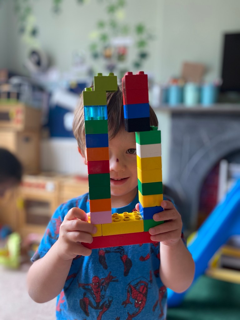 Ivor was so proud of the gate he made out of Lego. He told us if he blocks up the door he would have to stay and play forever! Bless.