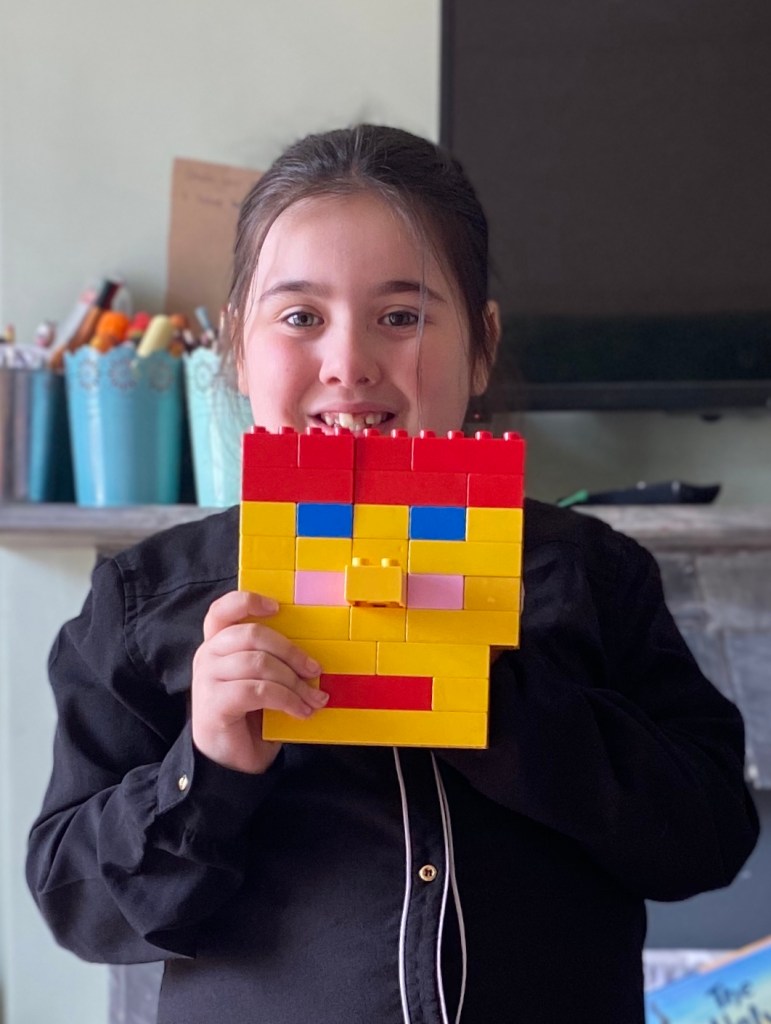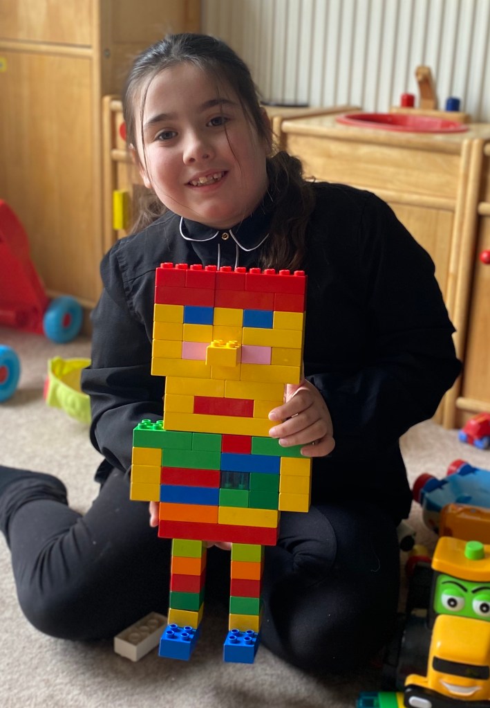 Bella made a lovely Lego creation of Tracie today, with lovely red hair and rosy cheeks.
