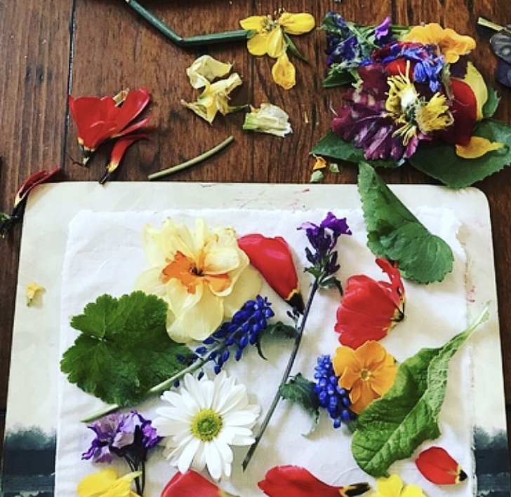 After a few minutes, we opened up the napkin and carefully peeled off the squidgy flowers. The patterns made by the flowers were very pretty and printed on both sides of the napkin like a butterfly.