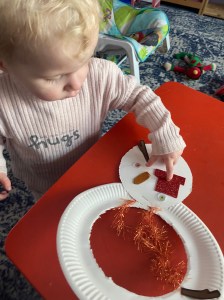 Today was the perfect day to start our Christmas Crafts because when we all woke up it had snowed! The children came in very excited but very cold. We put our slippers on and dived under a blanket untill we were all warm enough to start our crafts.