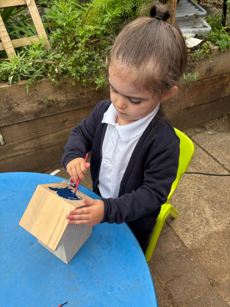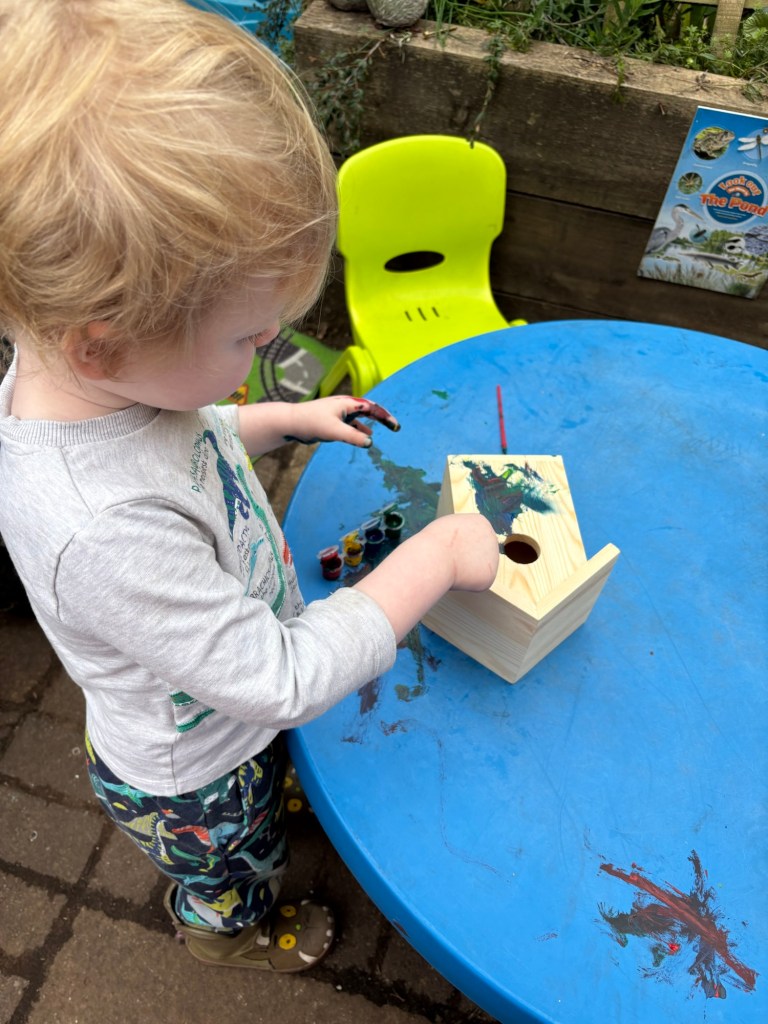 Ben and Lottie painted their bird houses, they are looking forward to see if the birds will use them.