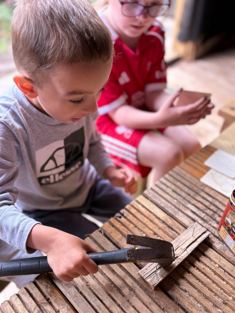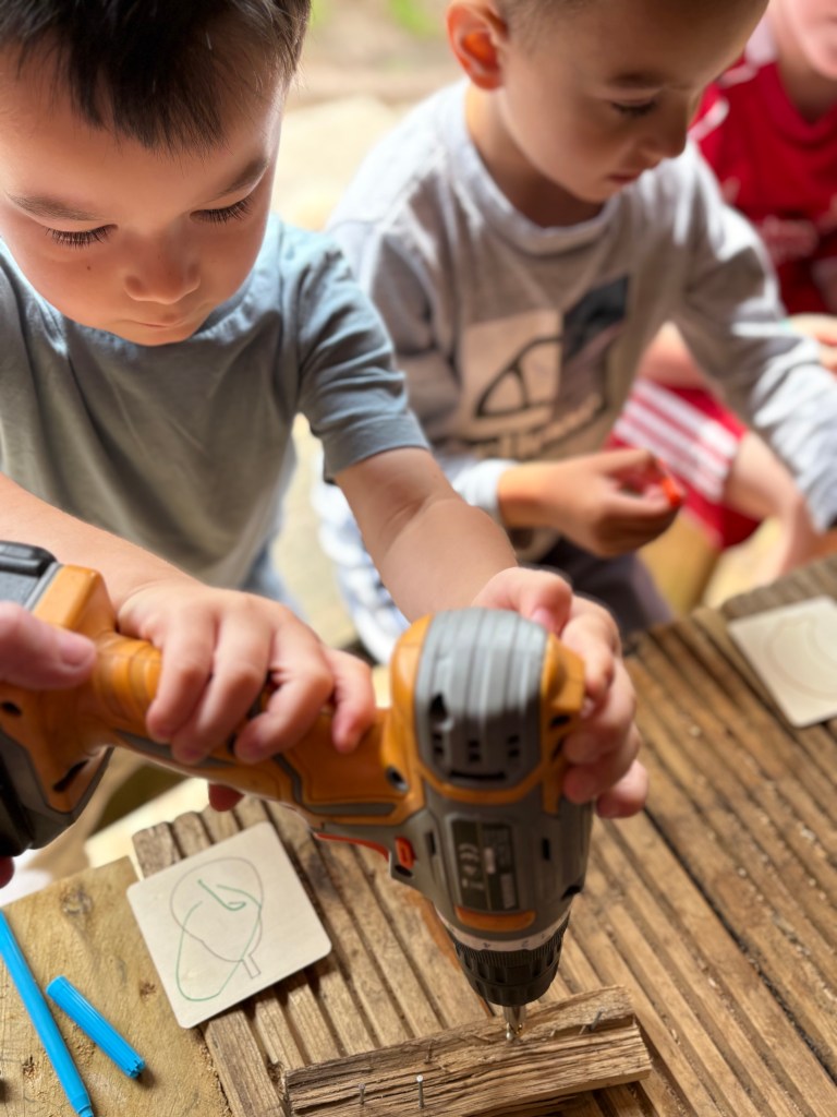 We looked at the wood carefully, appreciating its unique textures and colors, and used real tools to practice our skills while taking care to prioritize safety first. We examined the different types of wood, learning about their various properties and how they contribute to different projects. Each tool had its purpose, and we discussed how STEM concepts intertwined with our hands-on experience in this learning adventure, all while engaging the children in the Early Years Foundation Stage (EYFS) curriculum. Through this process, we fostered creativity and problem-solving abilities, encouraging an appreciation for craftsmanship and the natural materials around us.
