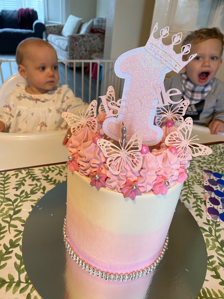 Izzy had a magical butterfly birthday cake which was made with vanilla cake and decorated with pink buttercream icing. Izzy loved trying to blow out her candle, everyone had to help her as it wouldn’t go out.