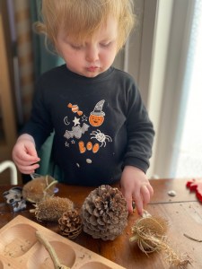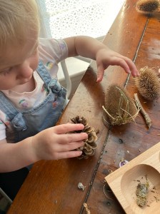 by providing the children with Imaginative play opportunities, exploring the natural world, and interaction with peers all contribute to language acquisition and communication skills which is evident by the children expressing thoughts, asking questions and listening to their childminder and peers.