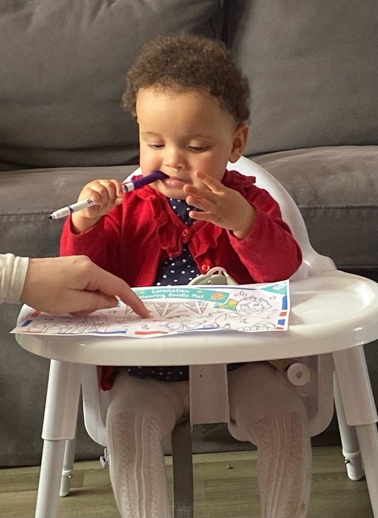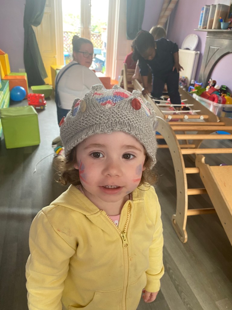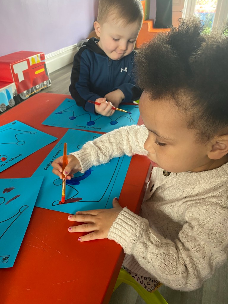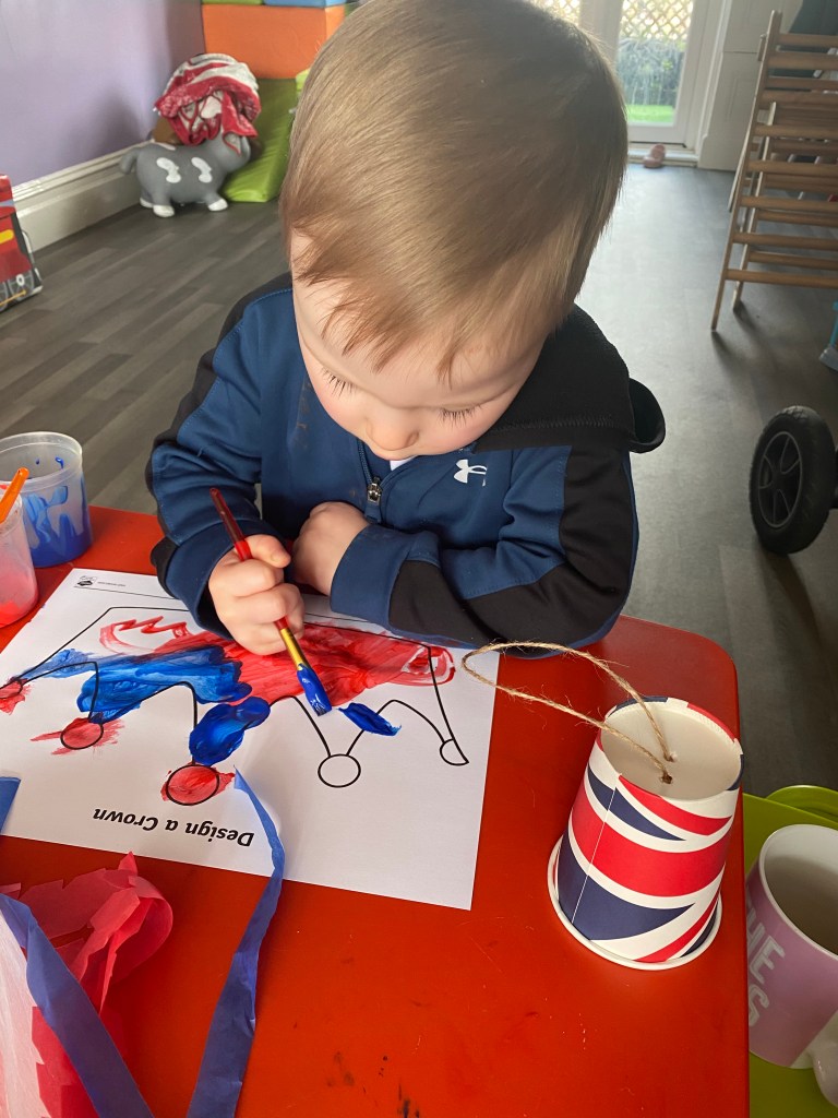 The children asked if they could make their own crown, they used card, paint, pens and stickers to make bright shiny crowns just like the king and Queen will be wearing.