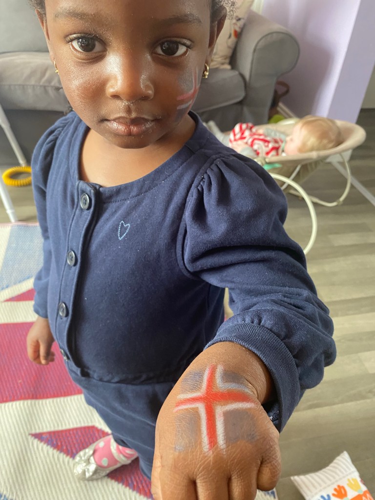 The younger children asked if they could have their face painted like the big kids. They were all so good standing still while Tracie painted the flags.