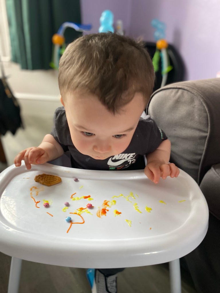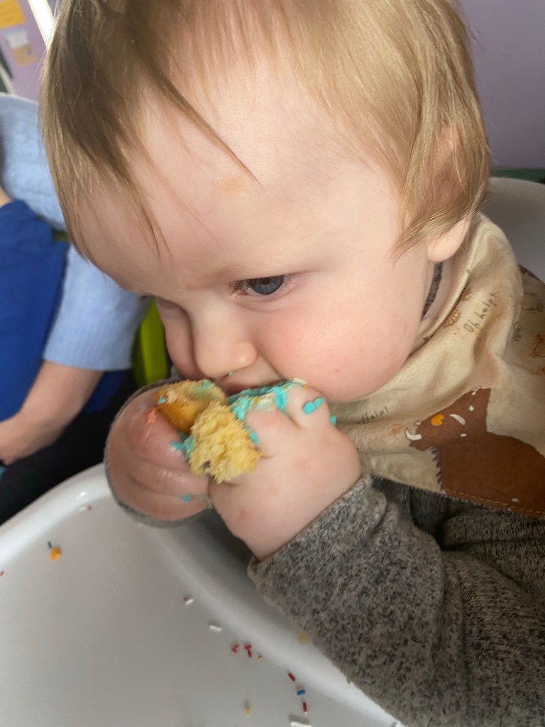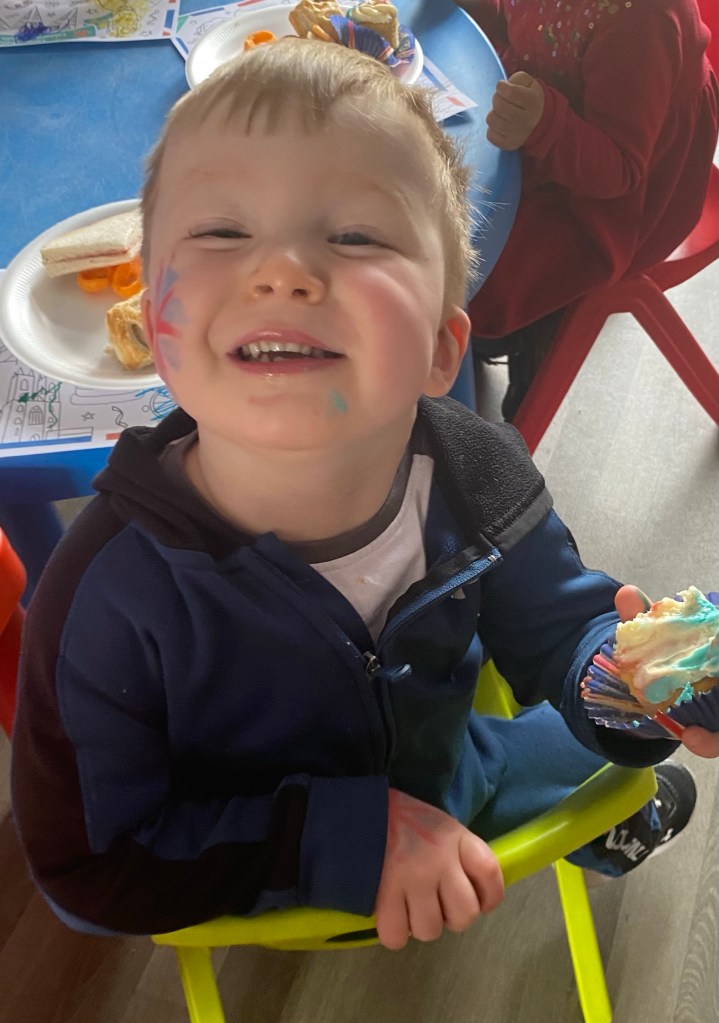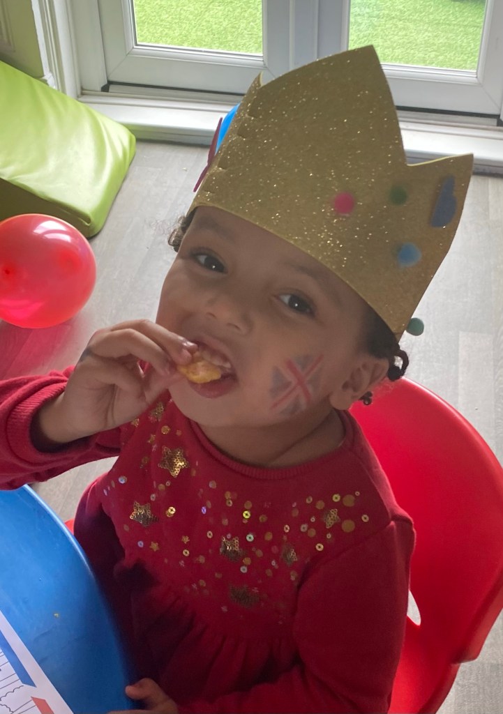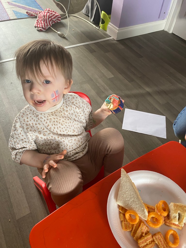 We enjoyed a lovely tea party we invited Becky and her mindee’s to join us with the party. We wore our crowns, made cakes, had sausage rolls, sandwiches and corn snacks. George said he loved the cakes the best, grace, Elsie, Fifi and Jack loved wearing the crowns and taking part in the activities. Charlotte loved eating everything she could get her hands on and Ben made a lovely mess while enjoying a cup cake.