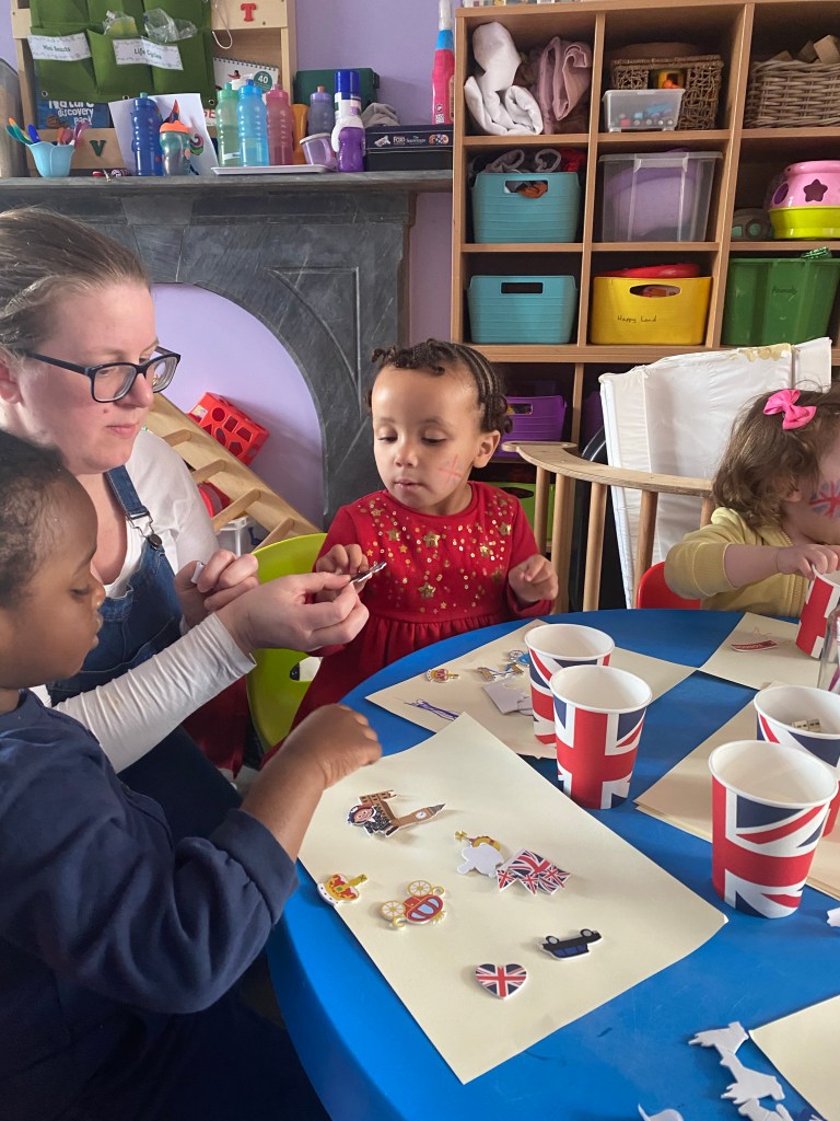 After the party we made pictures using foam stickers of the Royal family, corgis, London icons and Royal buildings. We ended the day singing songs and dancing to music which was Royal themed.