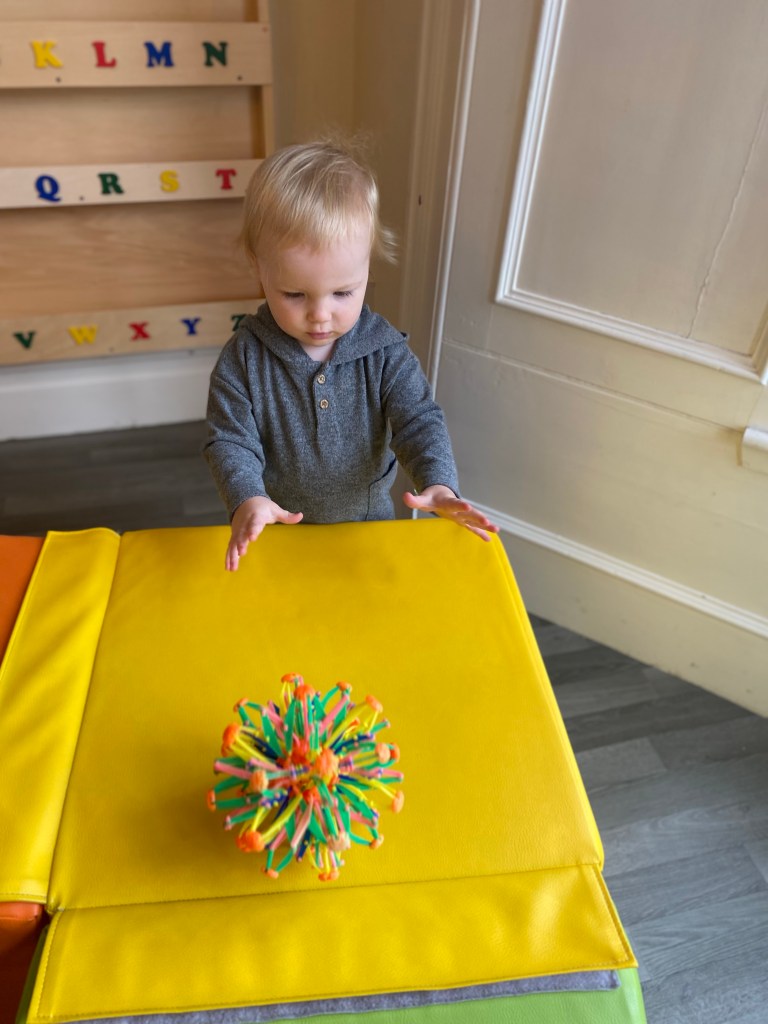 This is George and his favourite activity is anything related to balls. So we will help him get to know his peers by encouraging him to join in with various ball games.