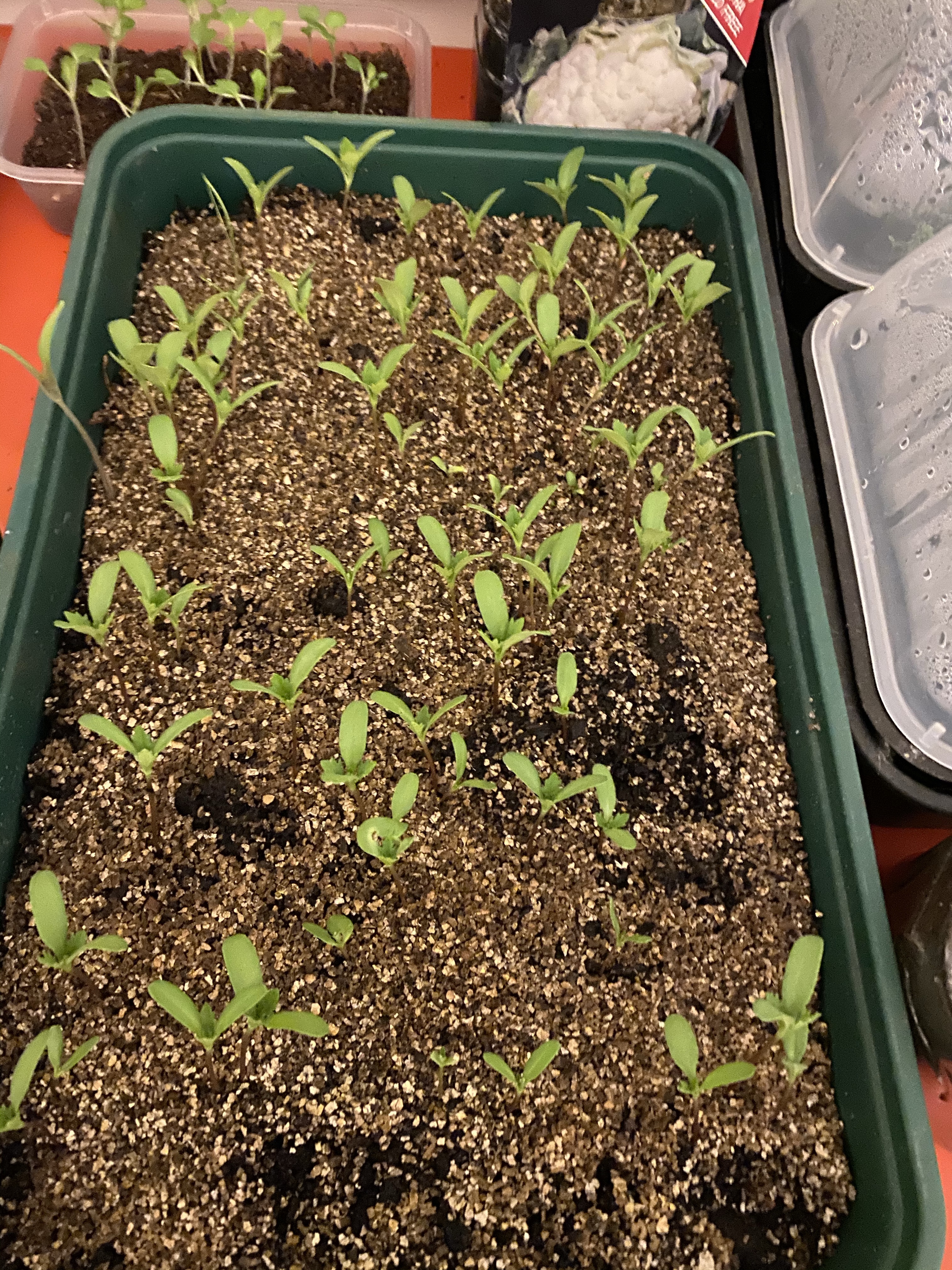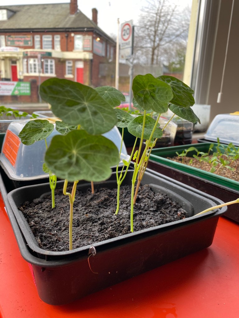 We have decided to plant our vegetables in between the flowers this year as we have so many strong plants. We cant wait to see them grow and make some cauliflower cheese nom, nom!