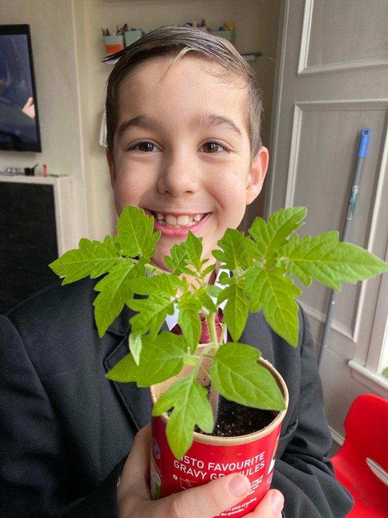 Fearne made sure the tomato plant had plenty of water to help it grow. Fearne asked Tracie for a drink as she wants to grow up bigger!