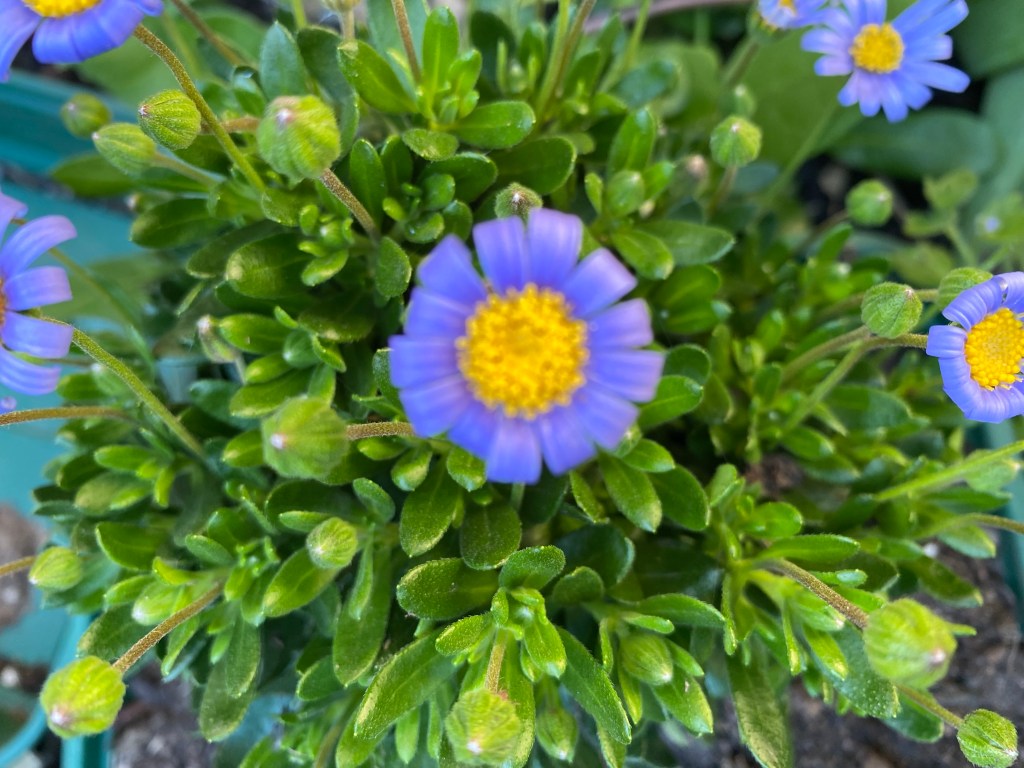 Our lettuce is growing in rows on our decking and we have herbs in the living wall with tomatoes growing up the trellis. The only place left to play is on the washing line, even there Ive been known to hang bird feeders and hanging baskets.