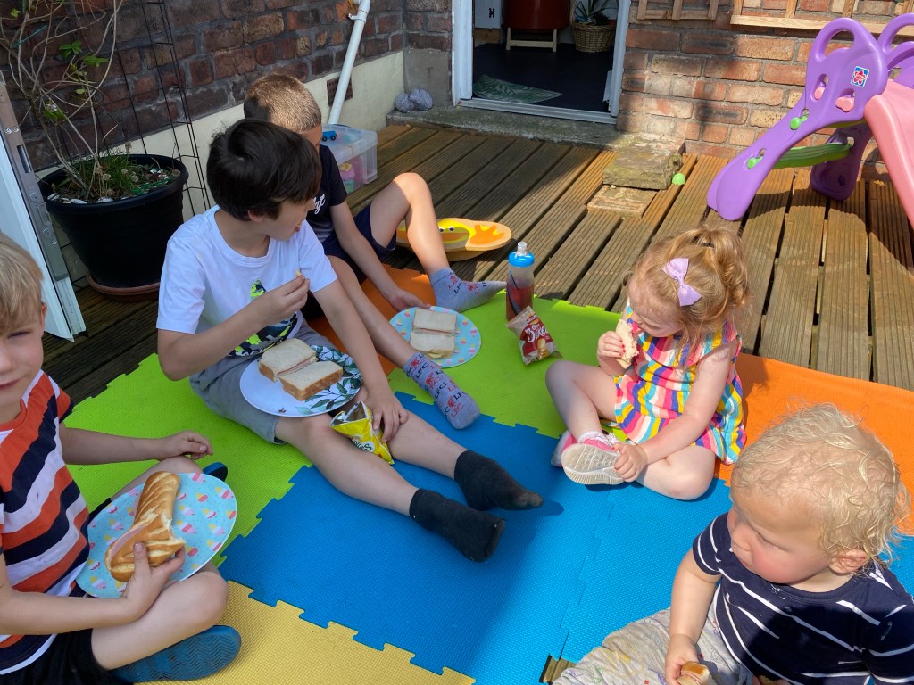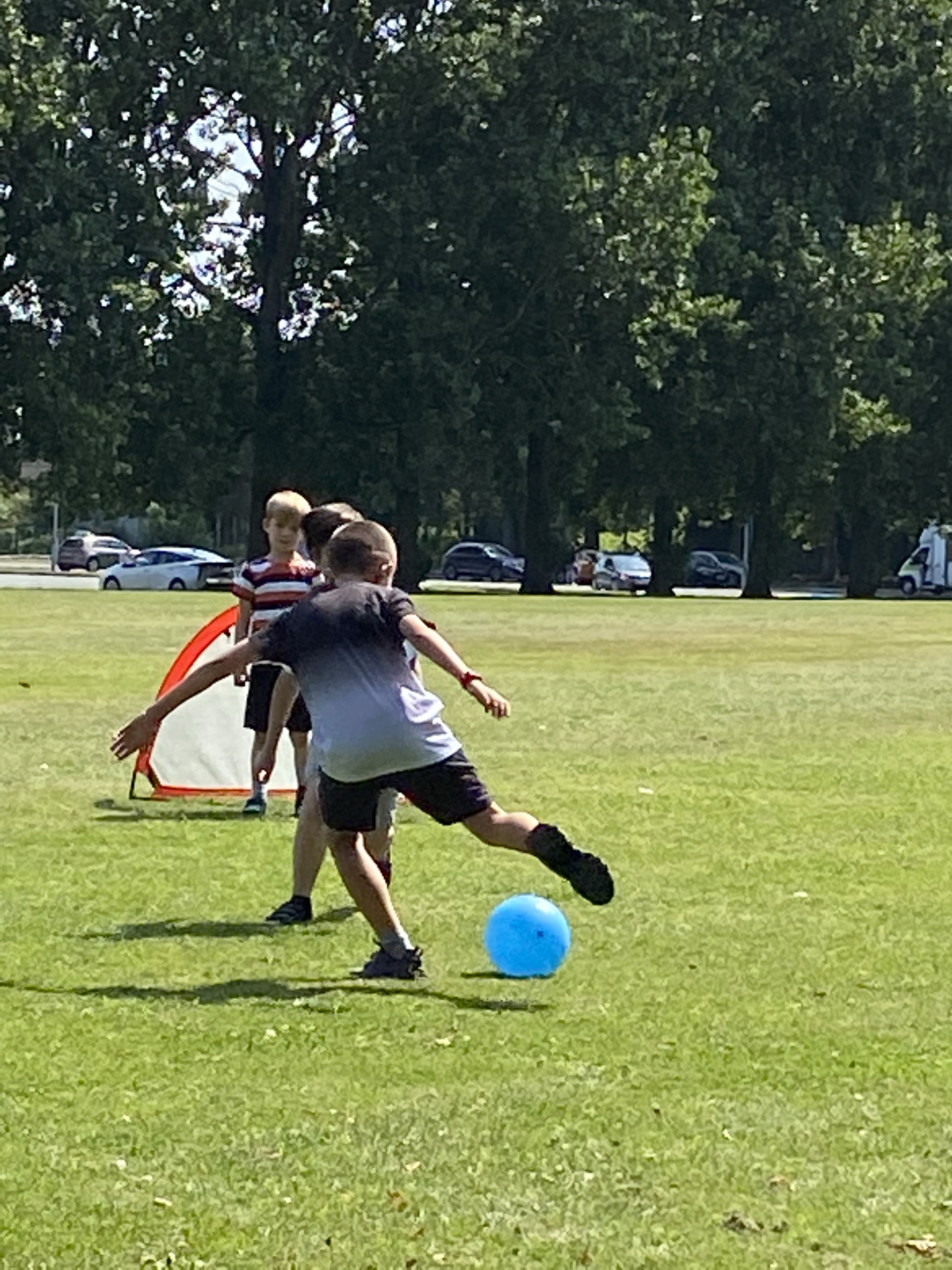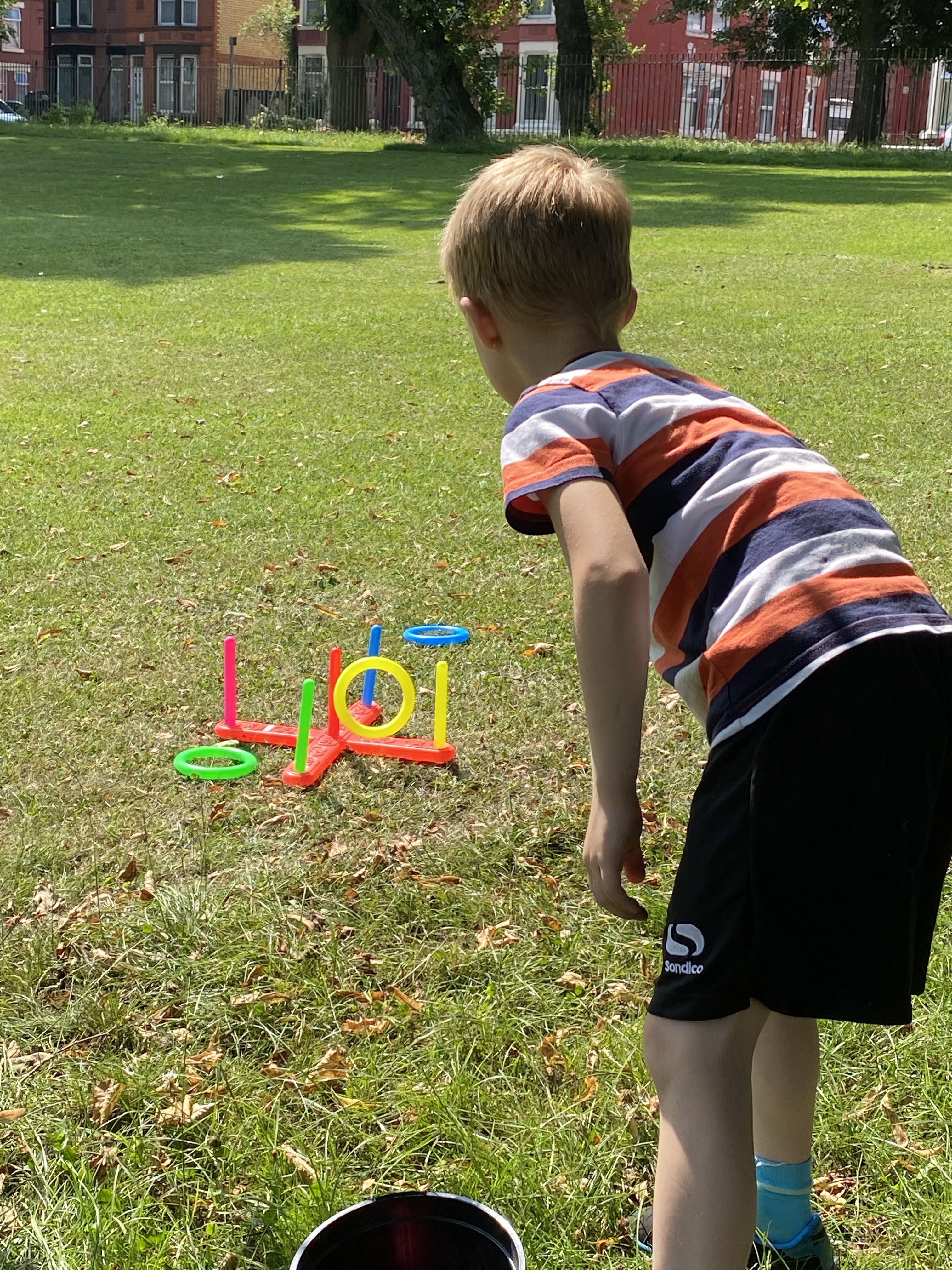 The younger children enjoyed a kick about, quoits and catch the ball in the net. They ran about so much all they wanted was the pram, bottle and sleep. Job well done!