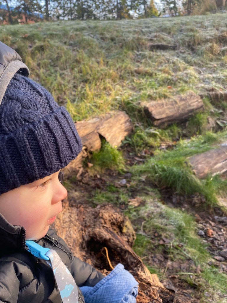 After breakfast we all got our coats, scarves and gloves on and went for a walk in the back garden.