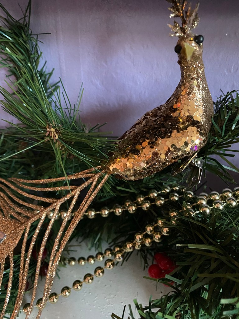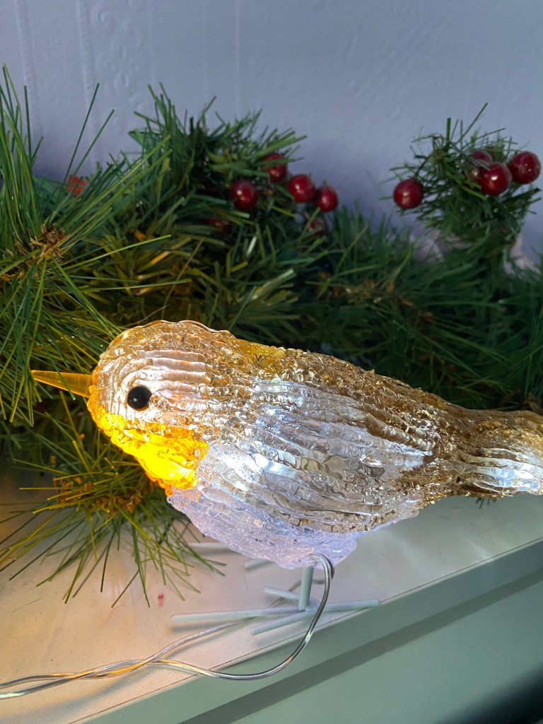 When Molly was in she asked me what my favourite decoration was, i said the light up Robin. Mollys favourite was the glittery peacock and George’s said his was the owl twit twoo.