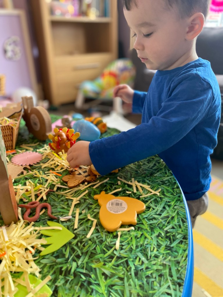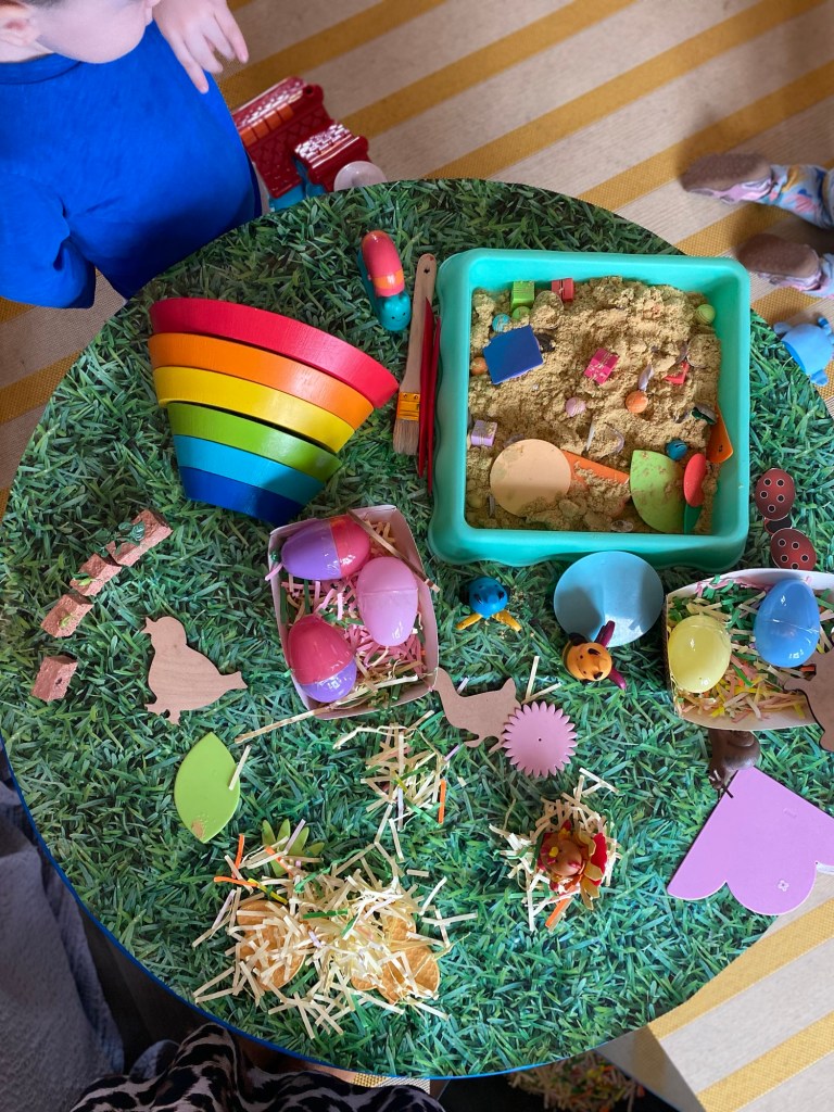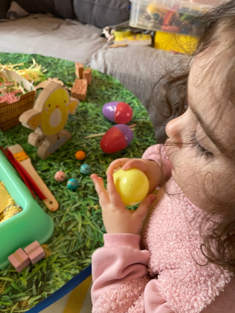 Over the next few weeks we will be celebrating Easter. We started the celebrations by having a tray activity.