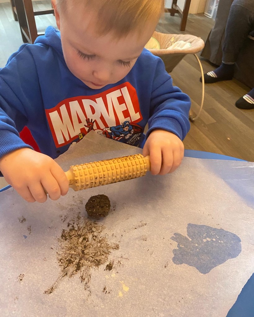 George was able to count up to and recognise beyond the number 10! How amazing! Now we need to print off and make leaf bricks from 11-20 so George can learn to recognise them in sequence too! Grace found numbers 1-4 and place them on top of the correct leaf, sh was so pleased with herself.
