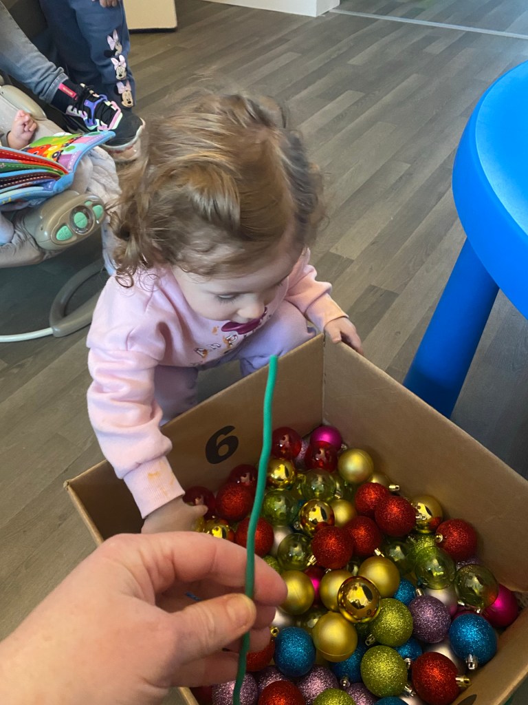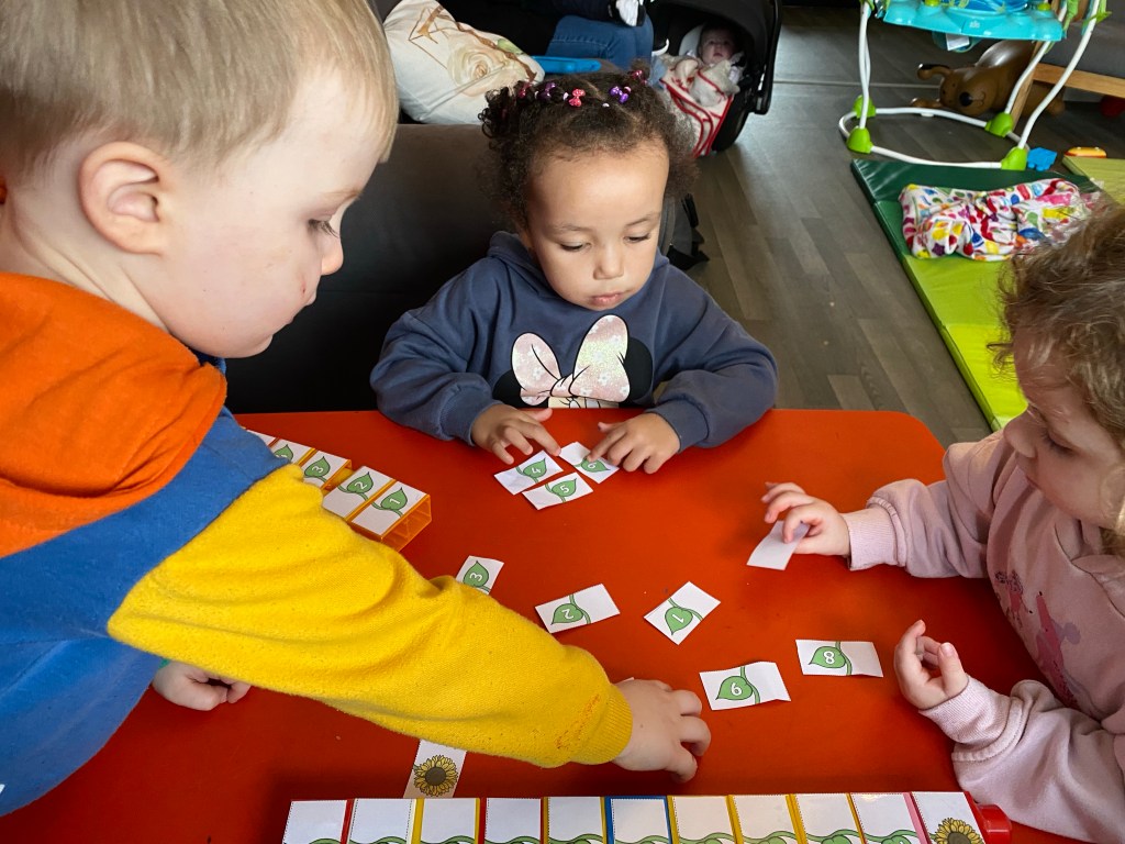 We first played a match the number game, the children all helped each other to place them on the corresponding number.
