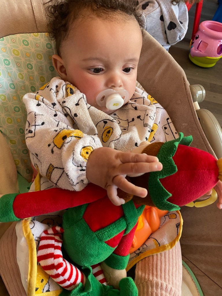 Else’s found yellow, orange, blue, purple, brown, pink and green flowers. “Wow Elsie well done finding all the colours of the rainbow”