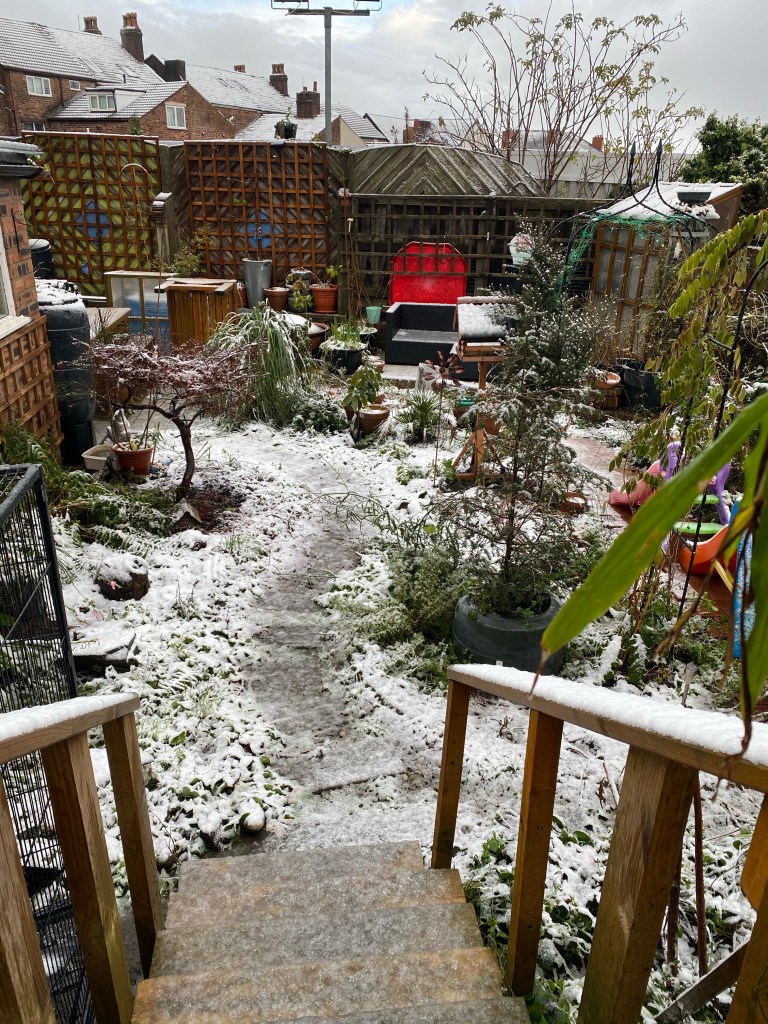Our lettuce is growing in rows on our decking and we have herbs in the living wall with tomatoes growing up the trellis. The only place left to play is on the washing line, even there Ive been known to hang bird feeders and hanging baskets.