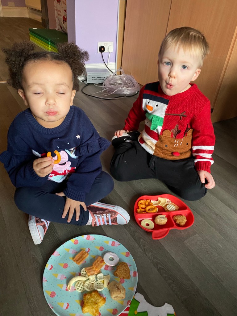 I asked the children “what do you think they will taste like? Else’s answer was “delicious, can I have one?” As I gave her the strawberry “ I asked “ what does it feel like?” Jack said “ yum yum” and took it out of my hand and popped it in his mouth. Else’s response was “squidgy “.