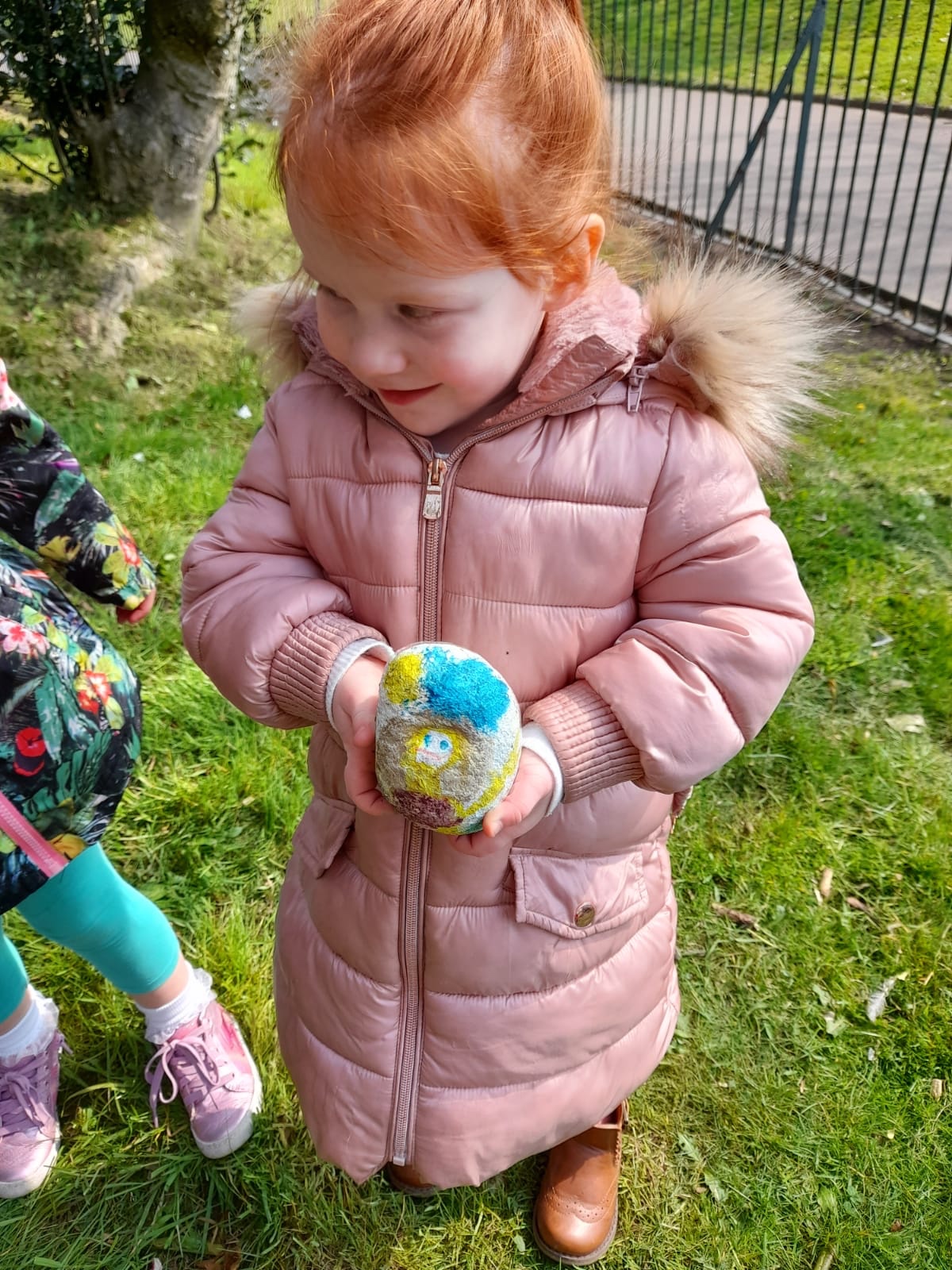 Georgia was the first to find one, it was small and colourful. She got so excited and told Tracie it was found at the bottom of a tree.