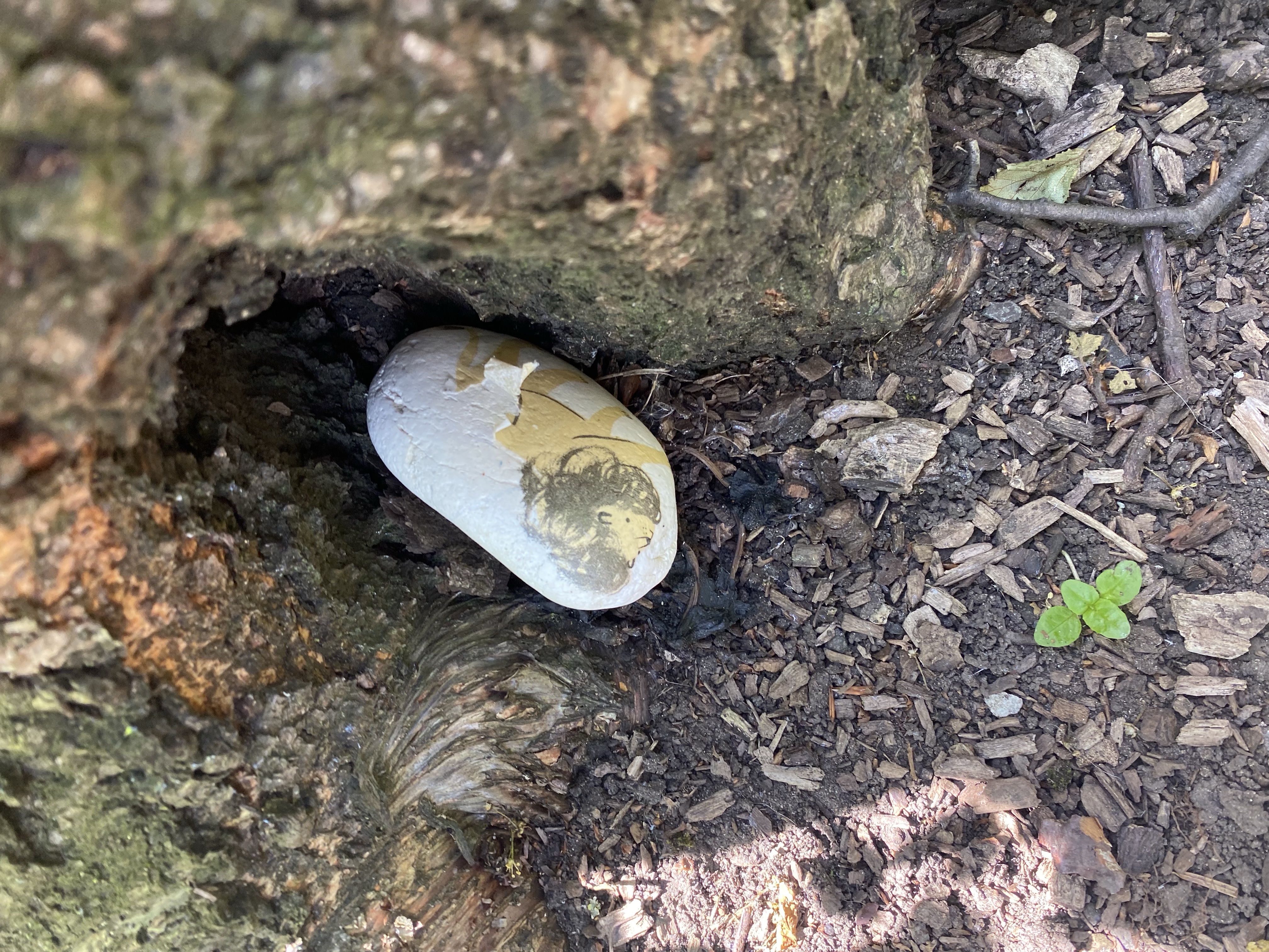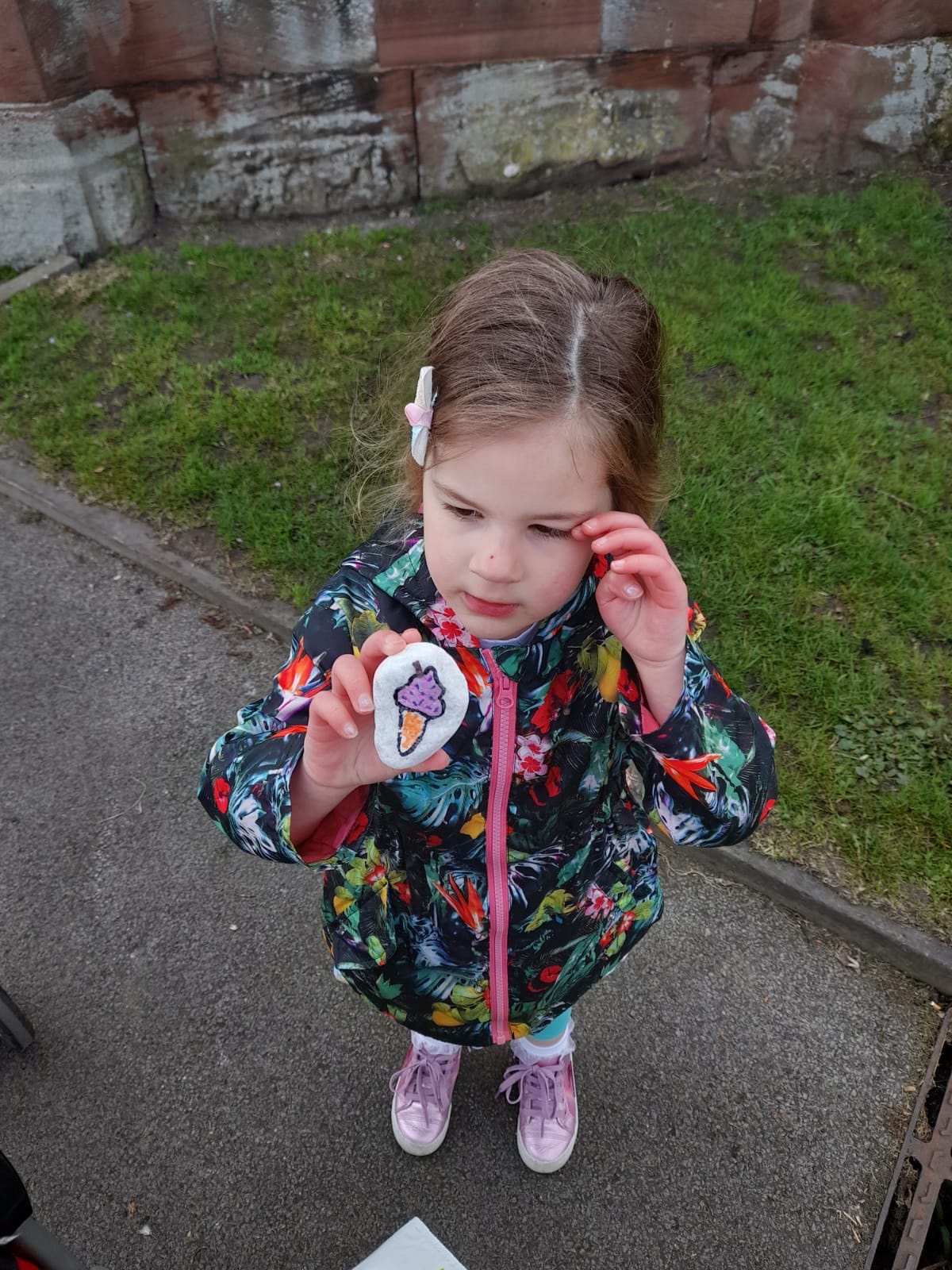 The ice cream stone was found in the rose garden, it was the easiest to spot! The children have all hidden them around Stanley park ready for someone else to go hunting and find them.