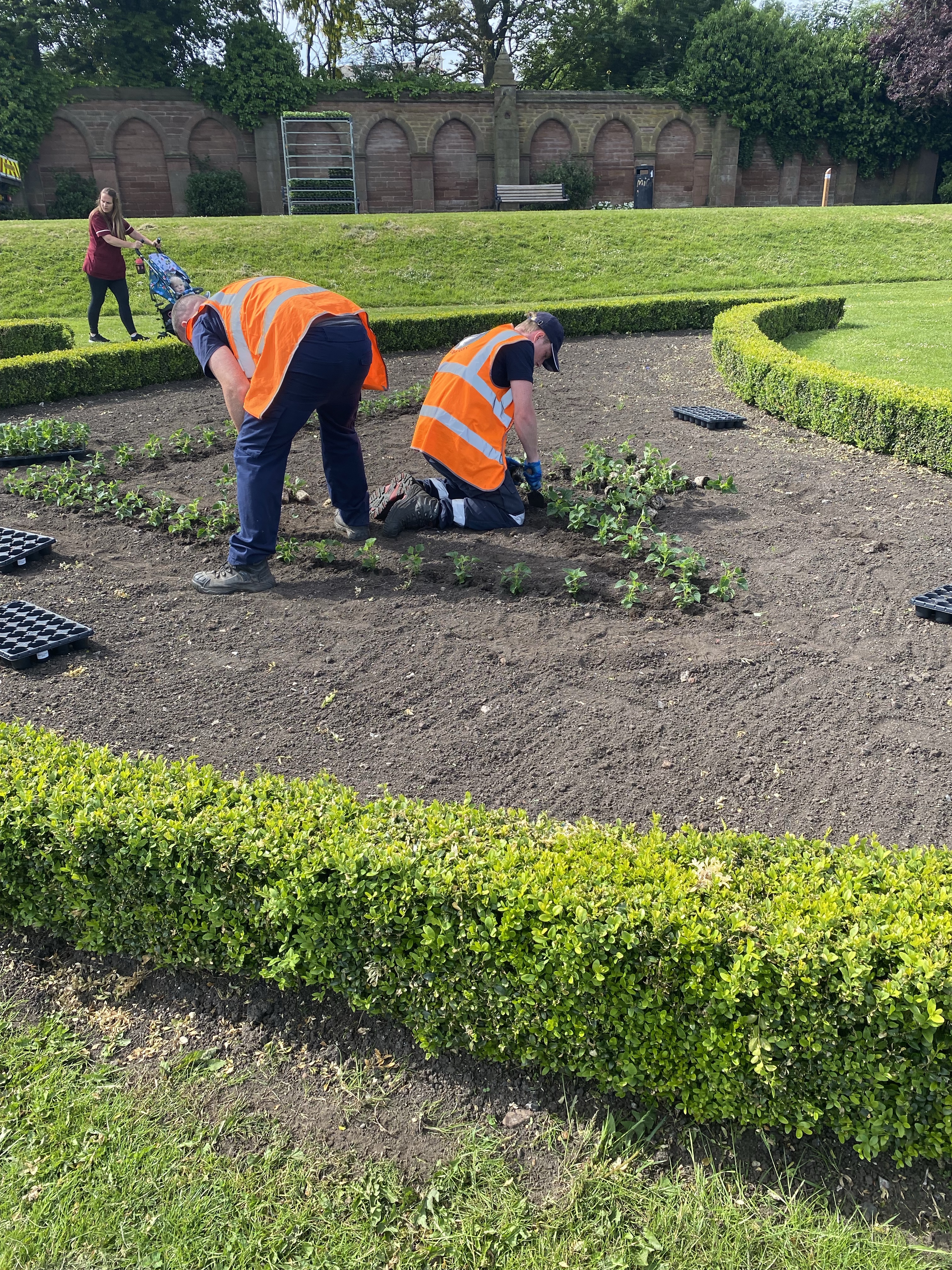 Martha decided to ask the Gardeners if they reuse them? The gardeners said no! Well that’s not good! Tracie asked if we could take them? We can use some for potting on our growing seedlings and recycle the ones we don’t use. The gardeners were happy for us to take them off their hands.