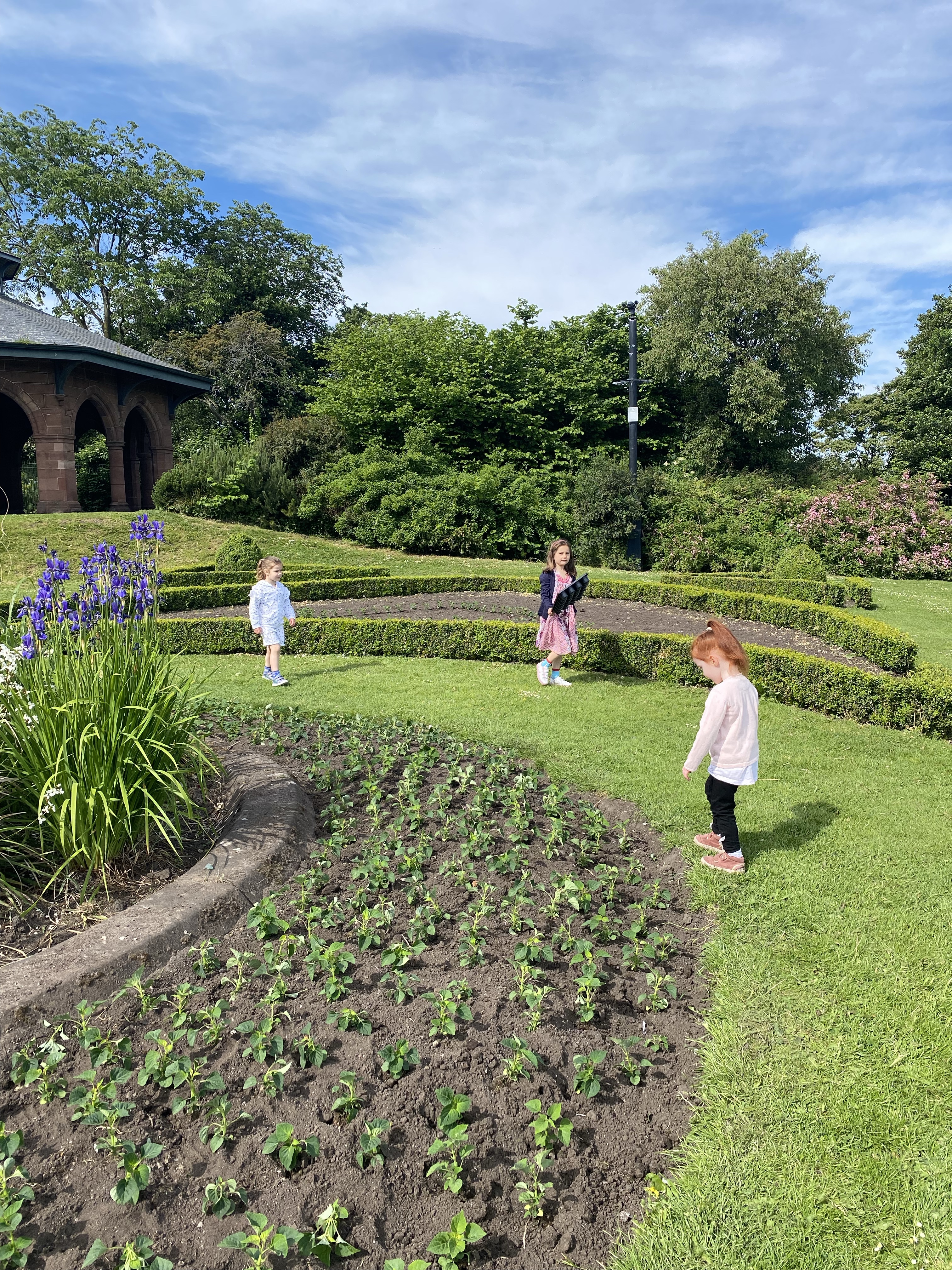 Today we had a lovely day at Stanley Park. We walked through the rose garden to the play park.