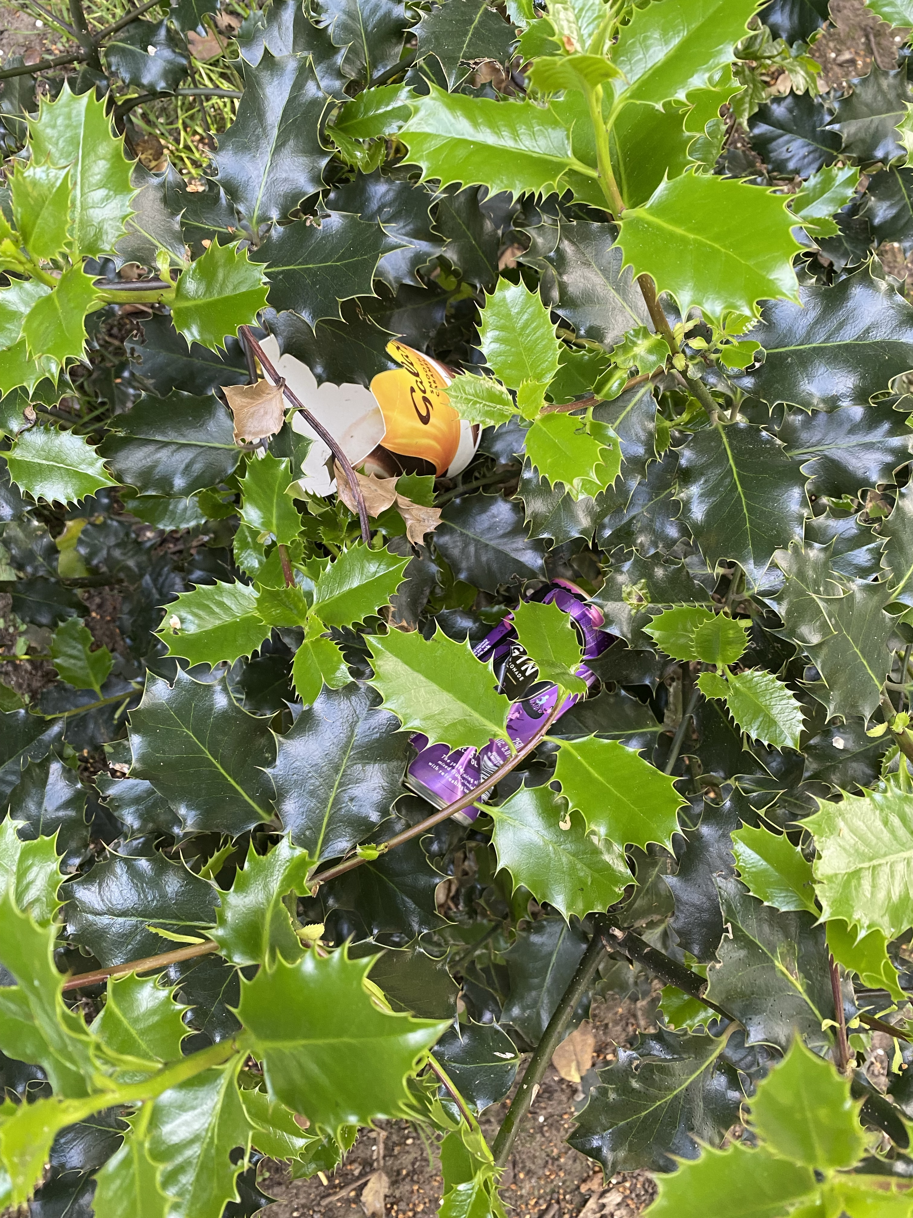 The next three where very hard to find. They were all inside different clusters of bushes. The children had to crouch down and look between the trunks and sticks.