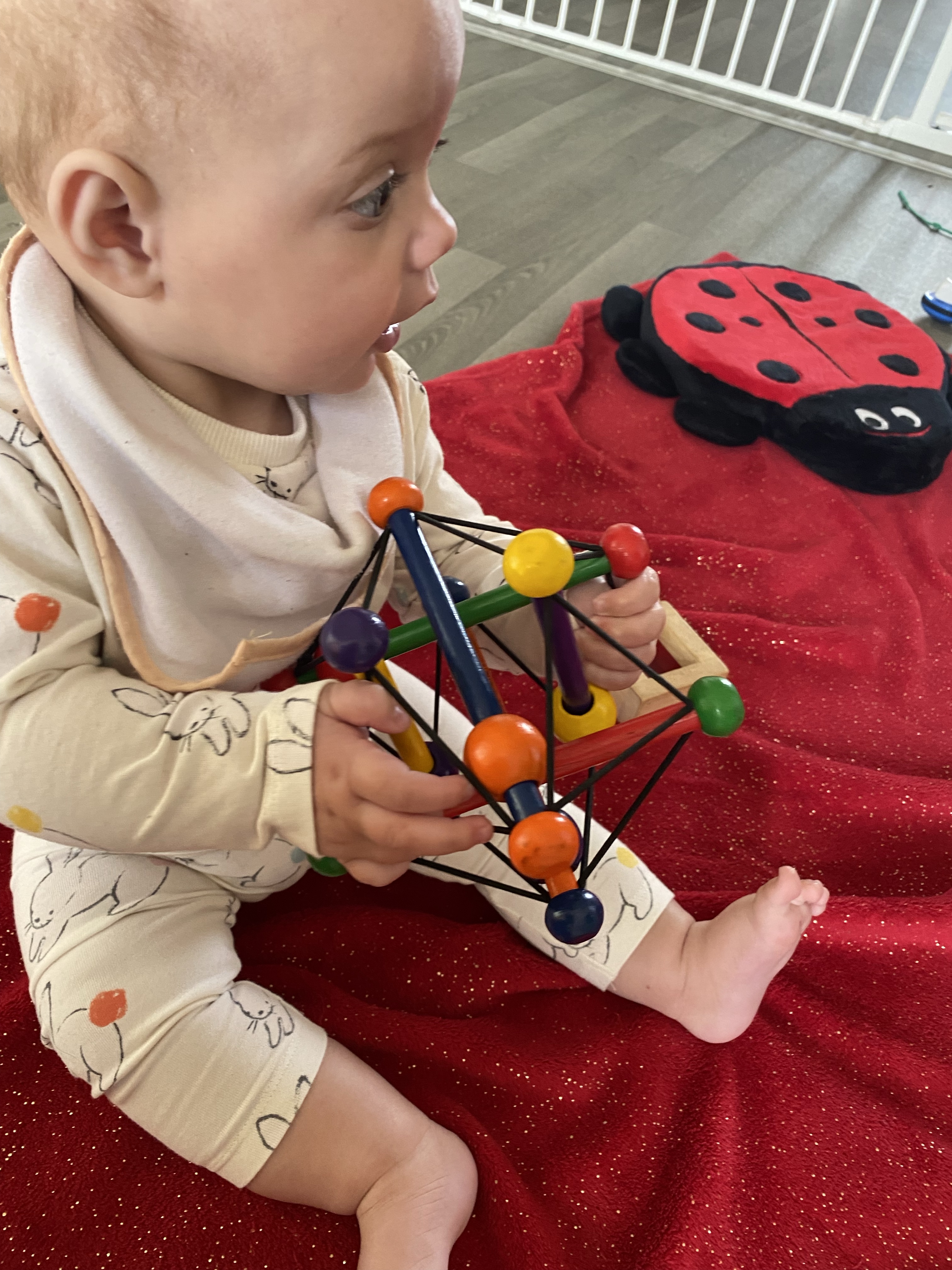 We enjoyed spending time at home with the sensory toys, practicing our walking skills and reading stories.