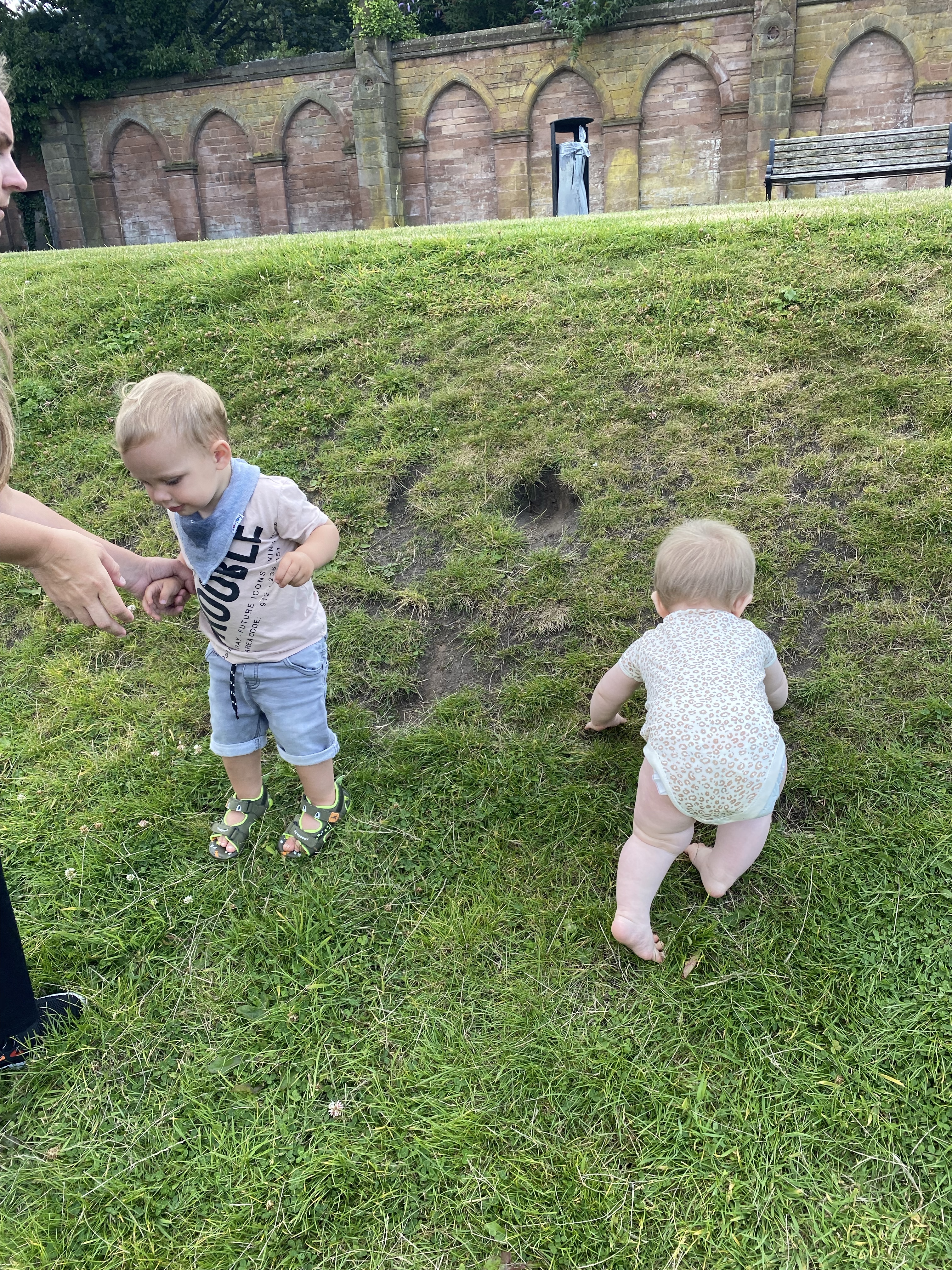 Mable and Elliott loved playing and are both confident enough to climb up and go down the slide independently.