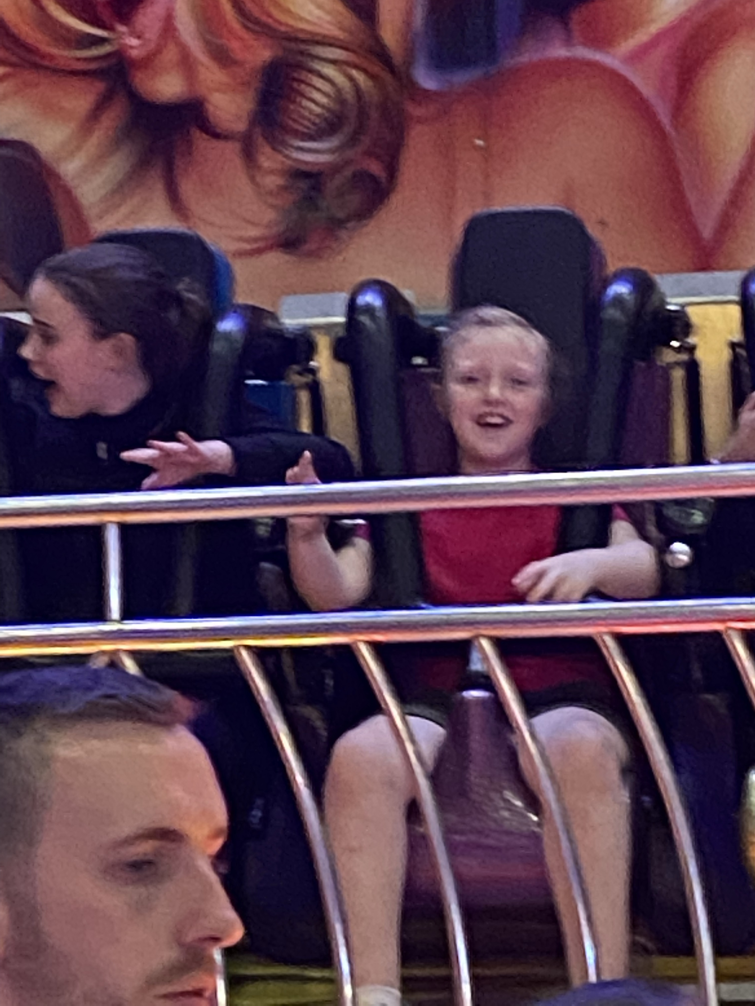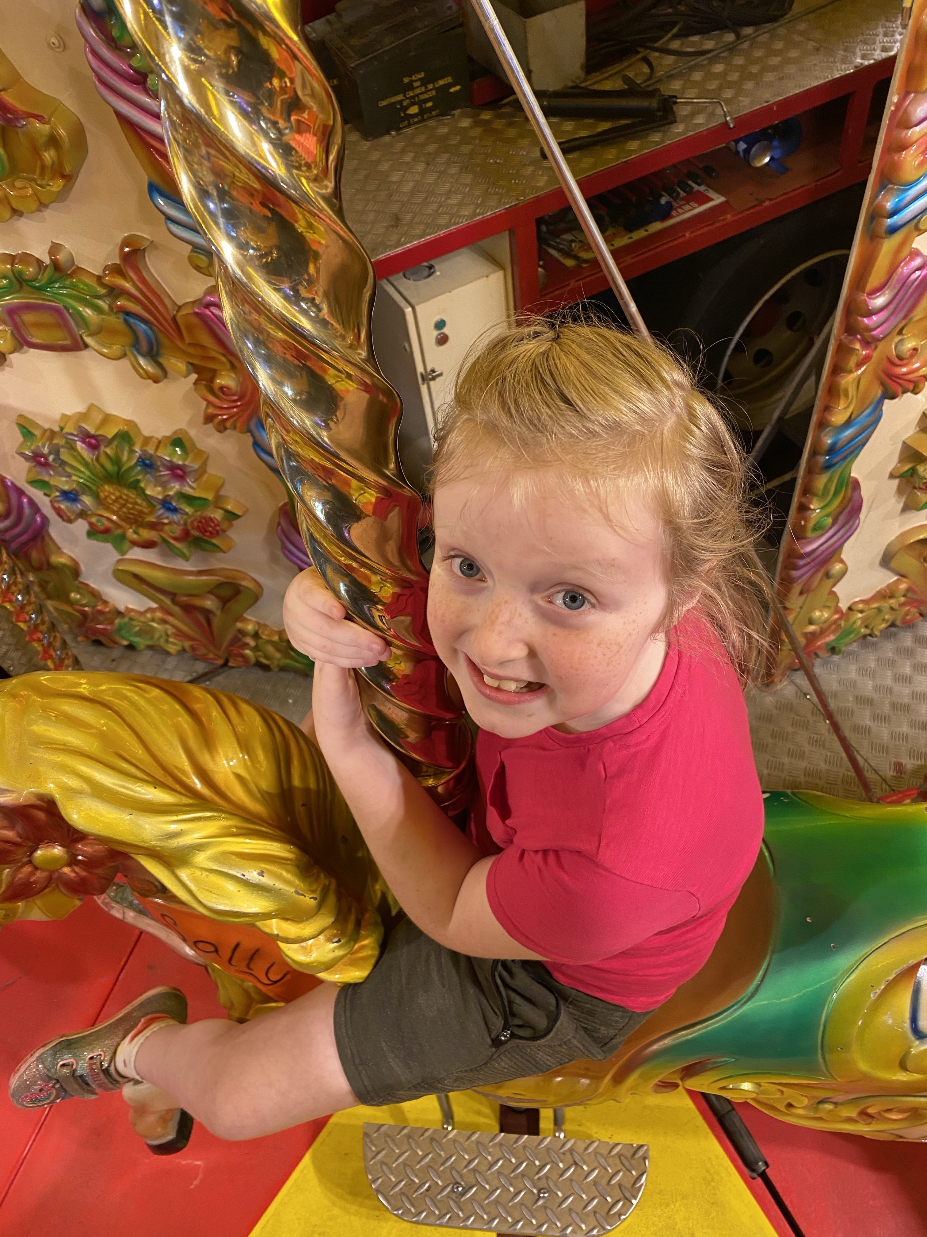 Chloe was very brave and went on the Freestyler ride, how she wasn’t sick we don’t know! Poppy took it a little safer on the mini hopper.