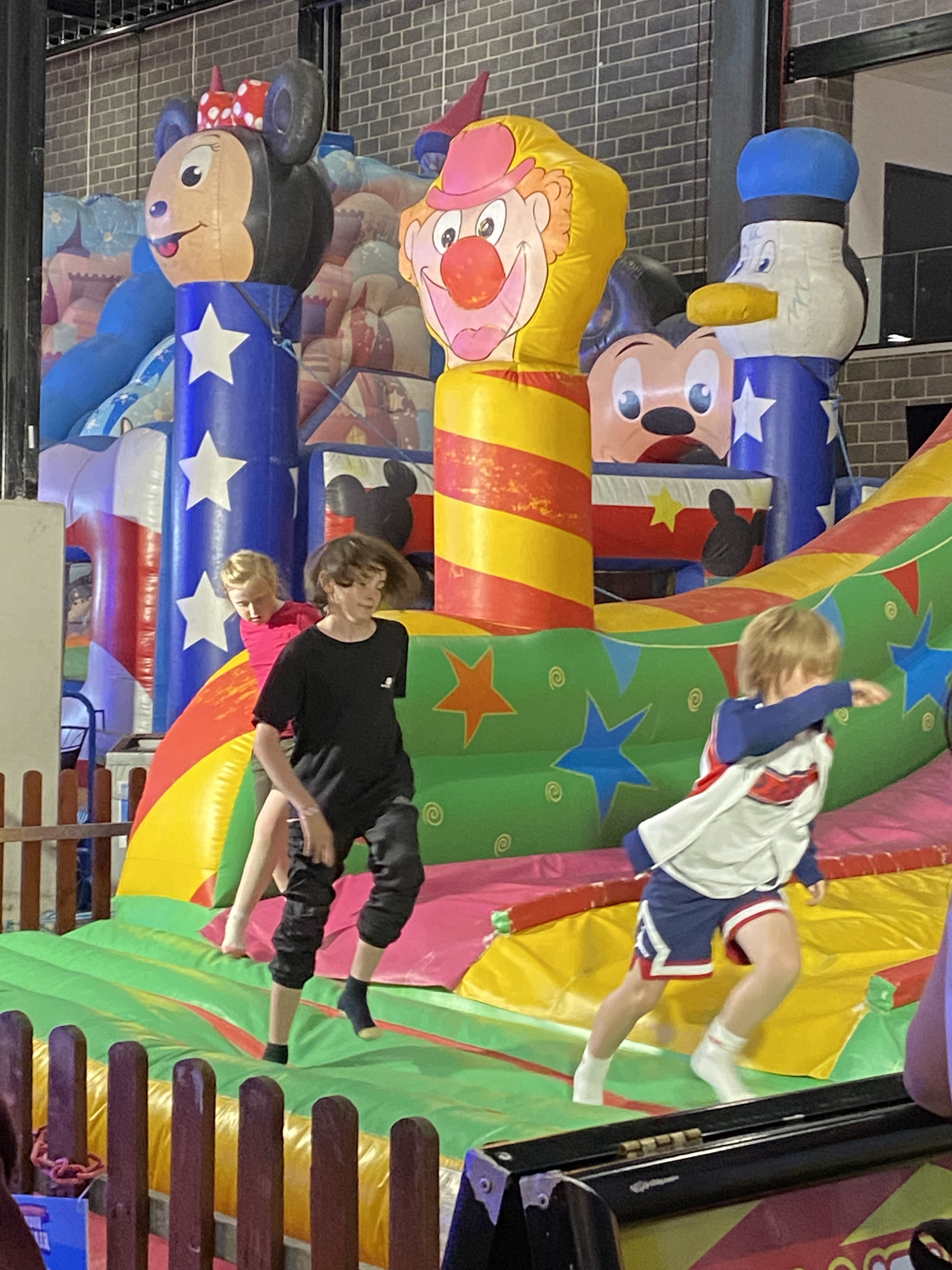 Tracie, Poppy and Chloe went on the carousel while the boys went with Emma over to the bouncy obstacle course.
