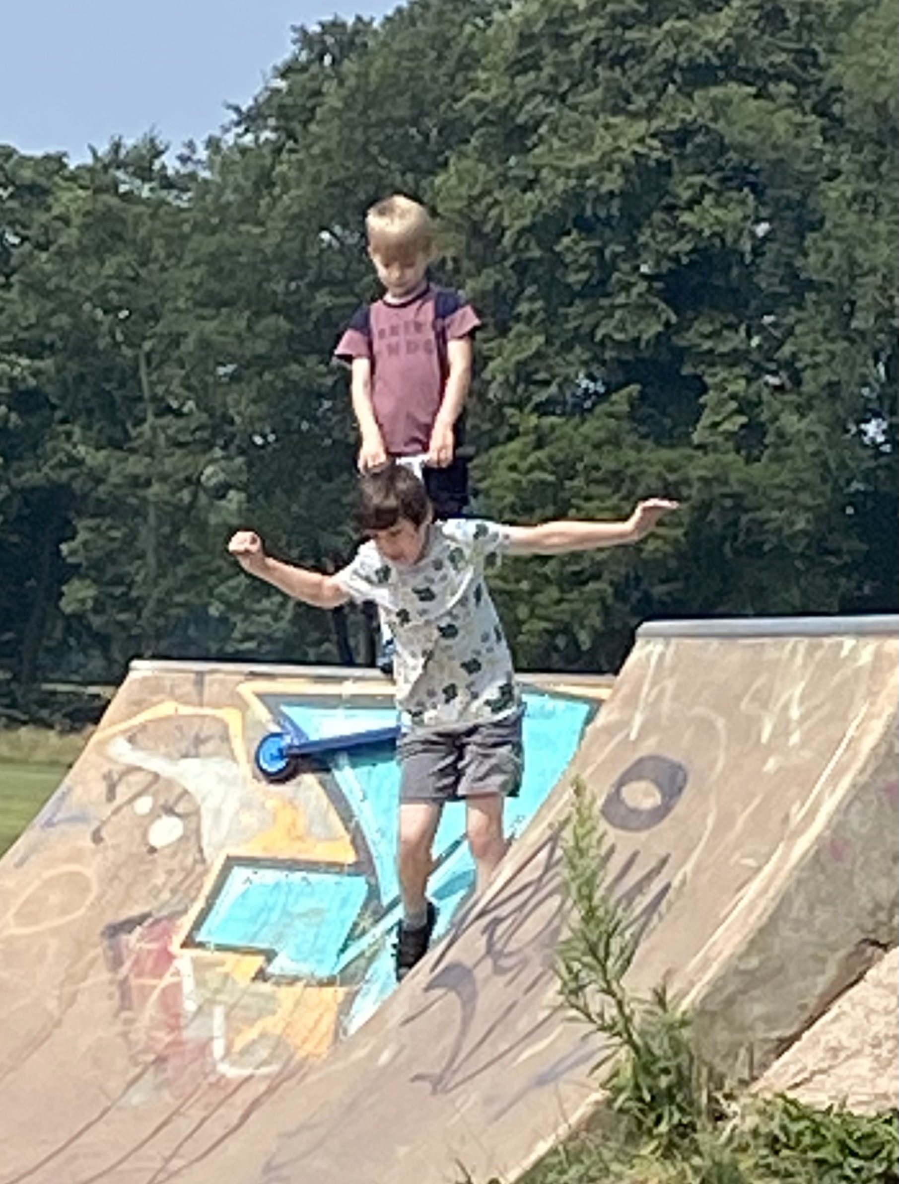 Poppy found the way up to the slide very challenging, Gemma and Chloe both encouraged her to have a try. It took about four attempts and quite a lot of screaming but eventually she made it up the ropes and down the tube slide!