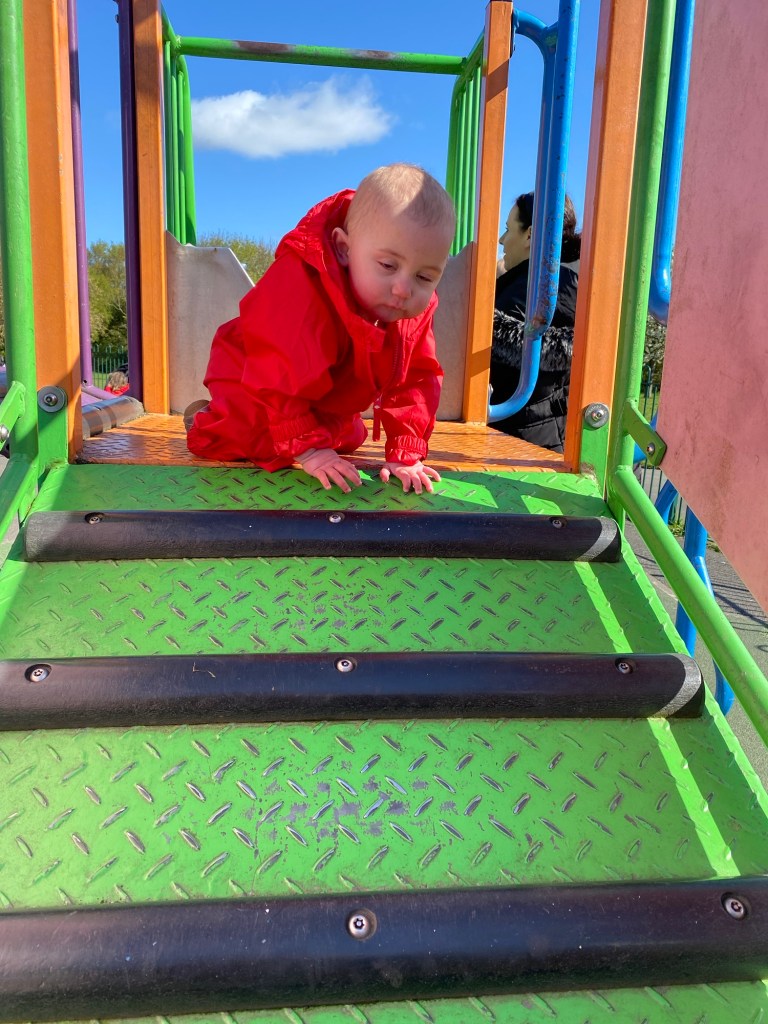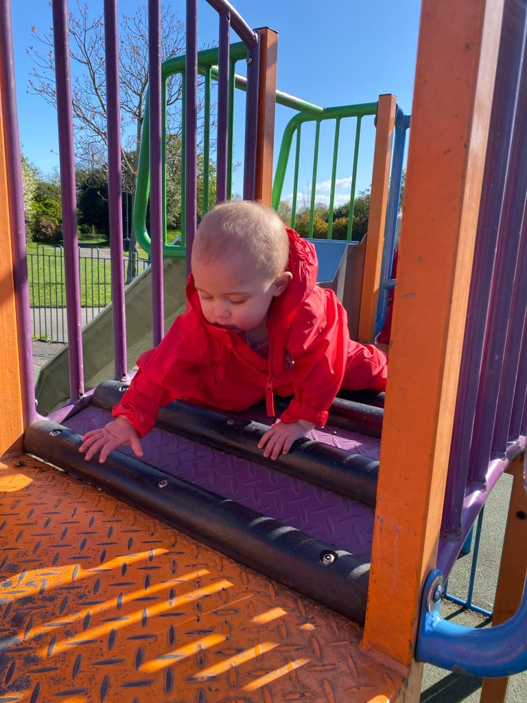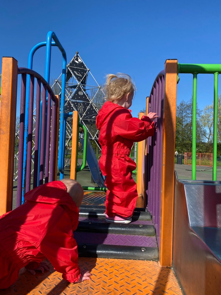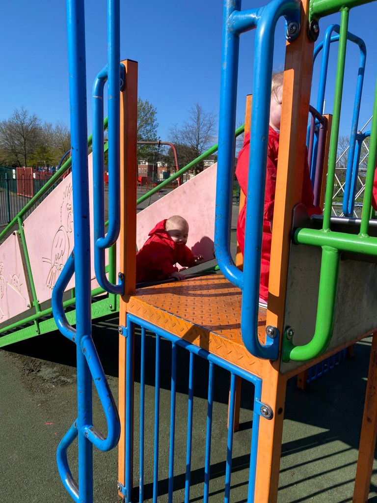 Mable and Elliott loved playing and are both confident enough to climb up and go down the slide independently.