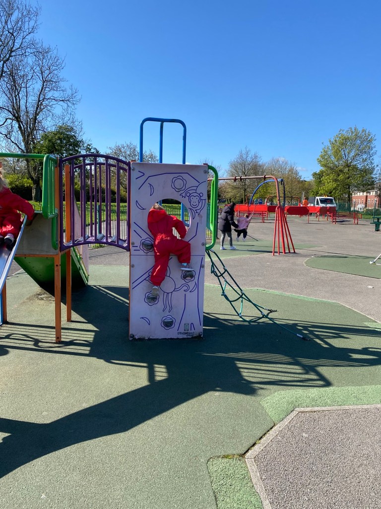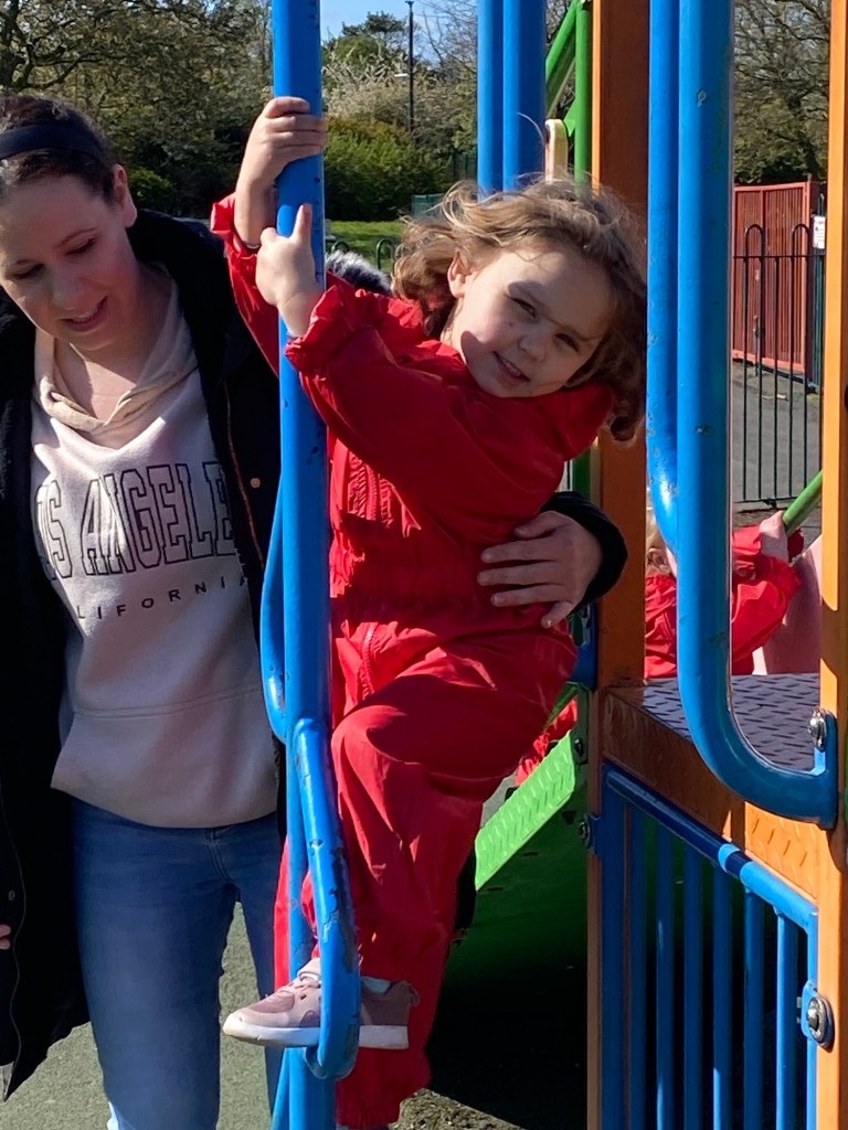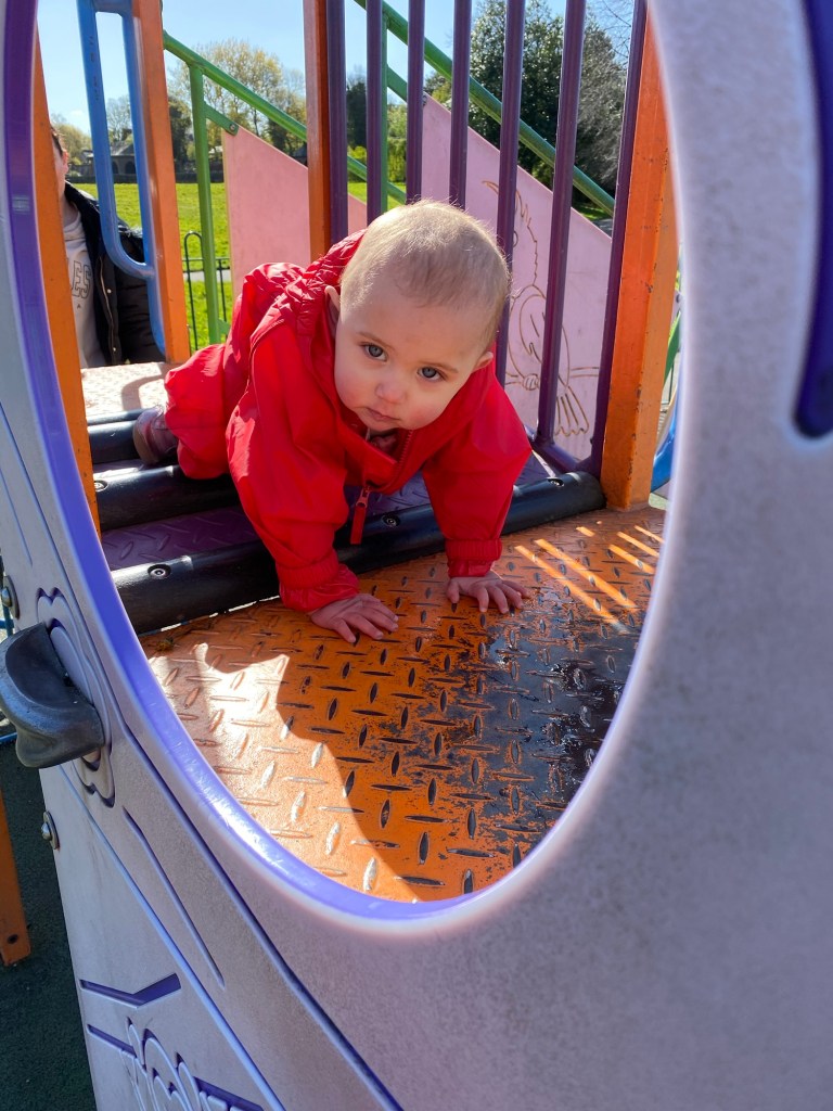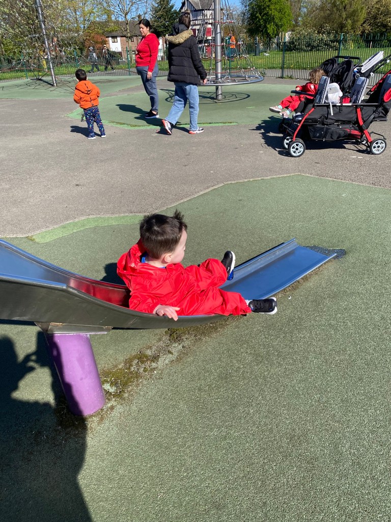 Mable and Elliott loved playing and are both confident enough to climb up and go down the slide independently.