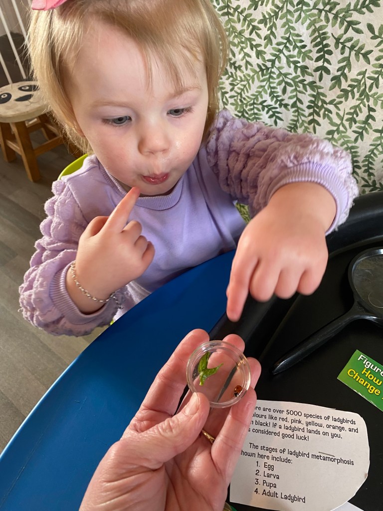 We looked at other British bugs and the children took it in turns to point out our ladybird.