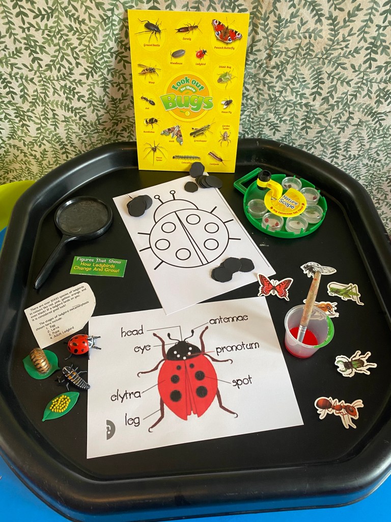 Tracie put together an activity tray for us to explore all about Ladybirds, what they eat, where they live, parts of their bodies and their lifecycle.