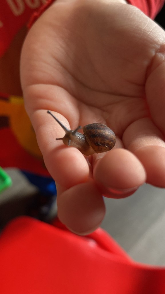 Some of the children handled the ladybird and snail. Others needed a bit more confidence and persuading to hold them.